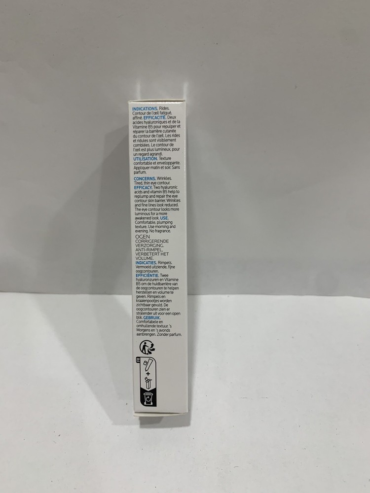 Sun Protection Factor (SPF): SPF 0 Volume: 15 ml UPC: 3337875613668 Country/Region of Manufacture: France Skin Type: All Skin Types / Sensitive Skin Formulation: Cream Tinted: No Active Ingredients: Hyaluronic Acid, Vitamin B5 Size: 15 ml Brand: La Roche-Posay Main Purpose: Firming, Wrinkles Period After Opening (PAO): 6M Expiration Date: 2025 Type: Anti-Wrinkle Color: White Body Area: Under Eye, Upper Eye gtin13: 3337875613668