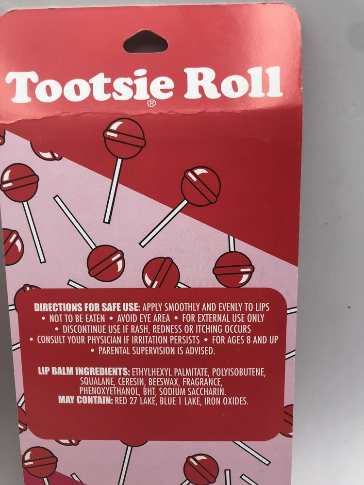 NEW Lot of 2 Flavored Lip Balm 8 Ct Sets ~ Tootsie Roll (+ Blow Pop Cherry and Grape, Dots, York Mints, Fluff Stuff Cotton Candy, Razz Berry and Sugar Daddy flavors) and Sour Patch Kids (Blue Raspberry, Redberry, Orange and Lime flavors). New in original package. No return on this item.