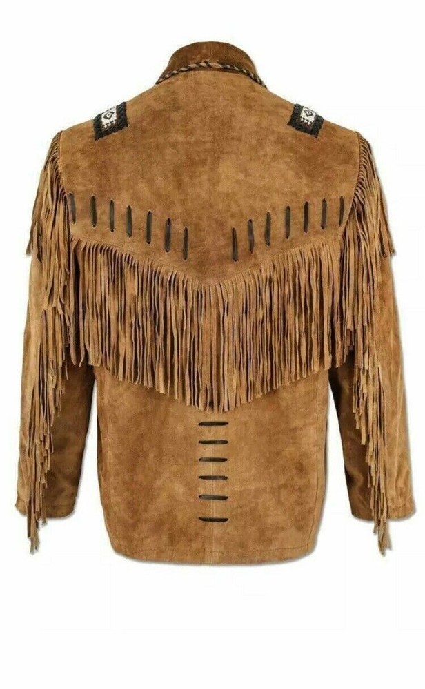 Men's Western Cow Boy Suede Leather Jacket With Fringes Stylish Cowboy Look! Step into timeless style with this vintage-inspired Western Fringe Suede Leather Jacket. Handcrafted from genuine suede leather, this jacket features intricate beaded designs on the shoulders and chest, adding a touch of craftsmanship and authenticity. The striking fringe details along the front, back, and sleeves make it a standout piece, perfect for those who appreciate classic Western wear. Features: Material : 100% Genuine Suede Leather Design : Intricate beaded design on shoulders and chest Details : Accented with studded details for a bold, edgy look Colors Available : Choose from a variety of colors Fit : Comfortable fit with easy movement Closure : Lace up Versatile : Perfect for casual wear, concerts, festivals, and more Why Choose this Suit? We are committed to providing high-quality, unique fashion pieces that cater to those who dare to be different. Shop with us for a seamless experience and express your true self with our alternative apparel collection. Sizing Guide: Available in various sizes. Please refer to the size chart in the images for accurate measurements and choose the size that best fits you. Select the exact size before placing the order Guessing Your Size : Always take the latest and actual measurement instead of estimating. Not Taking Measurements Seriously : Incorrect sizing can result in costly exchanges. Customization: We have variety of sizes and colors. You can contact us directly for your desired Size and Color. Order Detail: 1 pc Jacket Additional Information: ü Examination: All products are carefully examined before dispatch to ensure quality. ü Return Policy: If you need to return the goods for any reason, please contact us within 30 days from the date of the order. Items must be in re-sellable condition for exchanges. All shipping costs for both returned and exchanged items will be the responsibility of the buyer. Customer Satisfaction Guaranteed We are committed to providing our customers with the highest quality products and excellent service. If you have any questions or need assistance, please do not hesitate to contact us. Your satisfaction is our priority. If any product falls below your satisfaction level, please contact us before returning the item or leaving negative feedback. We want you to be happy with your purchase and we will help you out. Note: ?All orders shipping to the USA may now be subject to import duties and taxes as per new regulations. Buyers are responsible for these charges at delivery.?