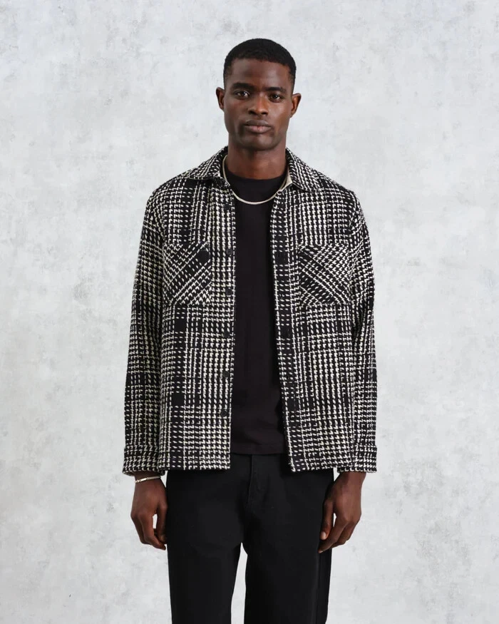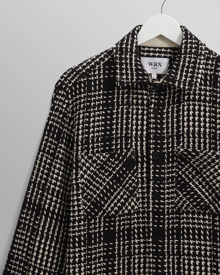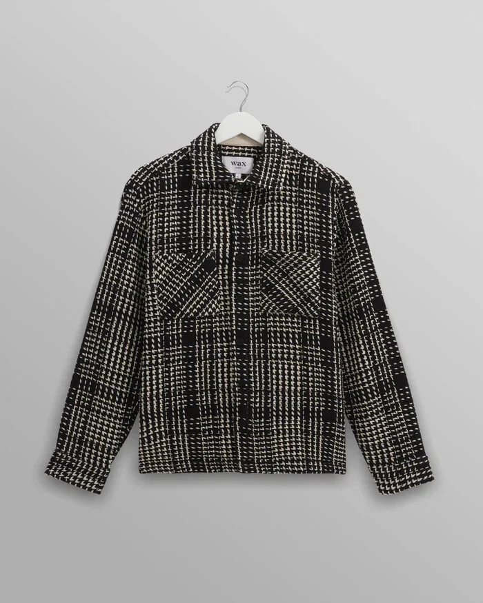 The Wax signature piece. The Whiting, our year-round staple, returns in a new woven design that mixes black and ecru yarns. This fabric is made sustainably by a family-run French mill using recycled cotton and features environmentally-friendly Corozo nut buttons and front patch pockets. Is it a shirt? Is it a mid-layer? Is it a jacket? It's all of those things and much, much more. The Wax Team is striving to make the most responsible choices in the production of our collections, which is why our products are mindfully designed and made to last. Designed to last Renewable tagua palm buttons Oekotex STEP fabric mill Traceable materials European fabric Low transport CO2 emmisions Responsibly manufactured