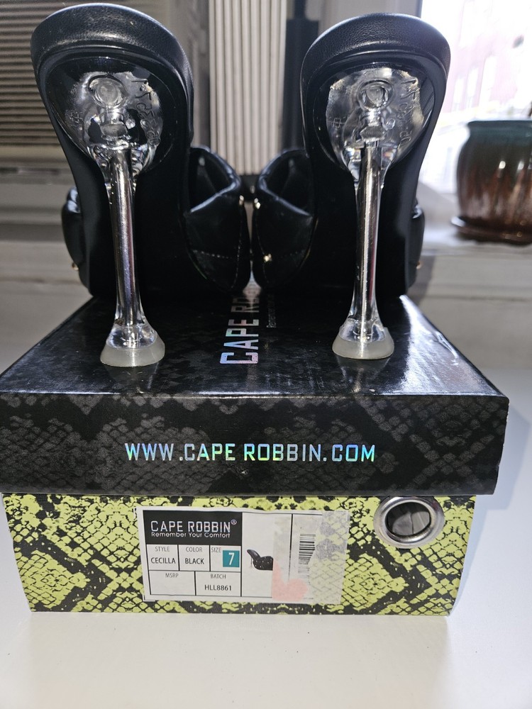 New, Never Worn, Sizes 7 Black Cape Robbin Stud Cecilia Quilted Open Toe Heels.
