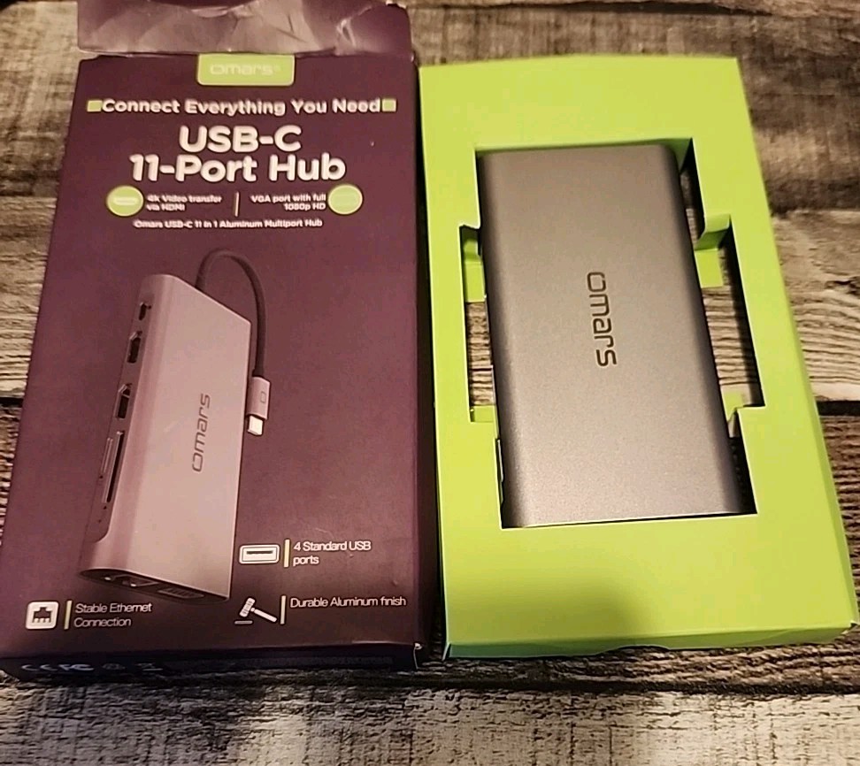 The Omars USB-C 11-Port Hub is a versatile and compact device that allows you to easily expand the connectivity options of your computer. With a sleek gray design and a convenient 0.5 ft cable length, this hub is perfect for use on the go. The hub features 11 ports, including Ethernet, 4K HDMI, VGA, USB, and SD, providing a wide range of connection options. The 1:1 connection split/duplication ensures that you can easily access all your devices without any compatibility issues. With its portable design and output voltage of 20 V, the Omars USB-C 11-Port Hub is a must-have for anyone looking to enhance their computer's connectivity capabilities.