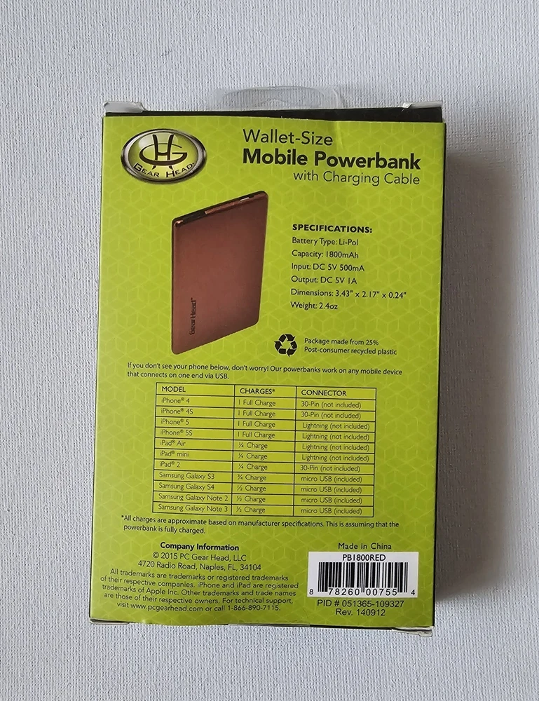 New Open Box Gear Head Mobile PowerBank Wallet Size/66