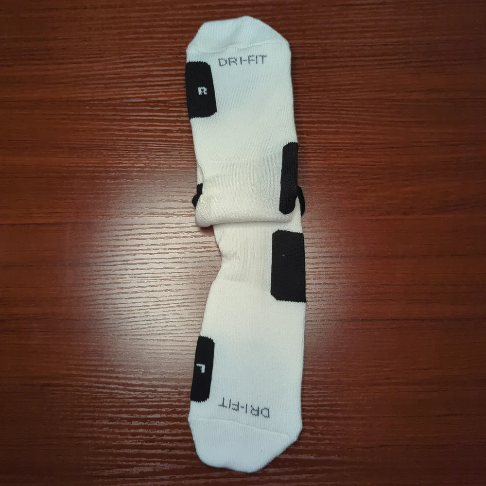 Original Nike Elite Quarter Cut Socks (White/Black) Size XL Brand new without tags 100% Authentic Ships in 1-2 business days from Illinois Many other colors available, check out my page to see them all The Nike Elite Basketball Crew Socks feature Dri-Fit fabric that keeps your feet cool and comfortable. It’s made for durability and offers a supportive and snug fit. The Nike Elite Basketball Crew Sock is a must own for any basketball player. Performance basketball crew socks deliver superior fit and comfort. Strategically placed cushioning absorbs impact Dri-Fit technology helps keep feet feeling dry and comfortable. Left/right anatomical design for targeted comfort. Ventilation zones promote breath-ability to keep you cool 63% polyester, 18% nylon, 16% cotton, 3% spandex Size Guide Small: Youth 4-6 Medium: Men's 6-8 Large: Men's 8-12 Extra Large: Men's 12-15