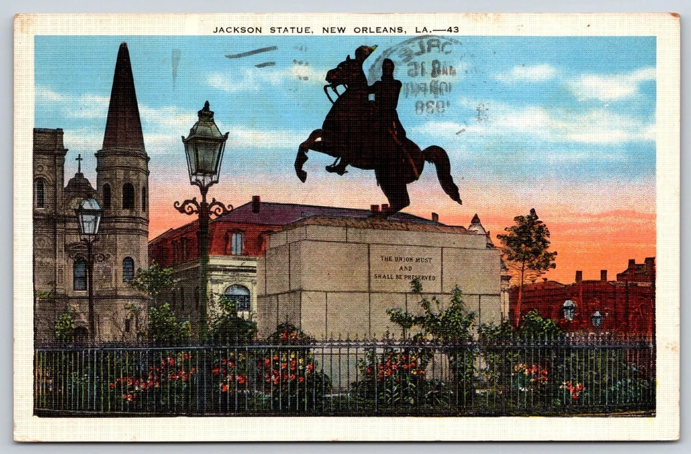 New Orleans LA-Louisiana, Andrew Jackson Statue, Antique, Vintage Postcard
