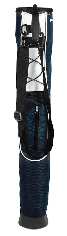 Description Brand: Orlimar Golf Model: Pitch 'N Putt Sunday Bag Condition: Brand New/Factory Sealed Color: Midnight Blue Stock # : 02ORLPTCHPT11111111MBL01 New Orlimar Golf Pitch 'N Putt Sunday Bag Midnight Blue Not just for Sundays anymore, the Orlimar Pitch 'N Putt golf bag is ideal for a day at the driving range, a few holes at the executive course, a Par 3 course, or a weekend getaway. Features a two compartment top, ultra lightweight construction, one accessory pocket, durable carry handle, detachable shoulder strap, adjustable elastic lanyard and strong stand mechanism. THE PERFECT LITTLE GOLF BAG The Orlimar Pitch 'N Putt Sunday golf bag is ideal for a day at the driving range, a few holes at the executive course, a Par 3 course, or a weekend getaway. So versatile, it can be used as an auxiliary bag to hook onto your bag while riding in a golf cart so you can take only a few clubs across the fairway or to the green where the clubs will stay dry and won't get lost. TWO COMPARTMENT TOP Enough room for as many as 6 or 7 clubs comfortably. The top measures 4 inches wide by 5 inches long and has a single divider to help organize your clubs. CART PATHS ONLY You can also hook this onto to your bag with the durable carry handle. Remove it and you can easily transport a few clubs across the fairway or to the green. Great when "cart paths only" are in effect. UPGRADED MATERIALS Featuring a new polyester plaid material. Textured and eye-popping.