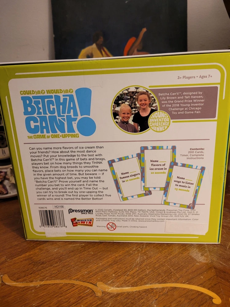 Enjoy endless hours of fun with the new Pressman Could Ya? Would Ya? Betcha Can't! game. This family game is perfect for all ages and brings out the competitive spirit in everyone. The game comes brand new, ready to be played with your loved ones or friends. The game is manufactured with the highest quality materials, ensuring durability and longevity. With the aim of guessing your opponent's answers, this game will have you on the edge of your seat. Don't miss out on the opportunity to add this exciting game to your collection today!