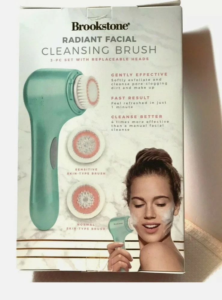 New Radiant Facial Cleansing Brush 3 Piece Set With Replaceable Heads.