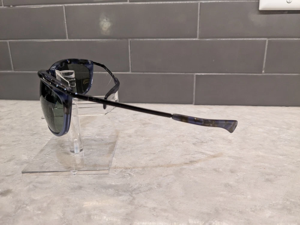 New Ray ban 2319 Olympian 1 sunglasses. Color code 1288/31 is a blue/black tortoise frame with G15 tinted lenses. Size 62-19-125 has sport temple. This wrapped frame is good to be worn as is or take it to your local eye care provider to have your personal prescription installed. Ray-Ban Case included.
