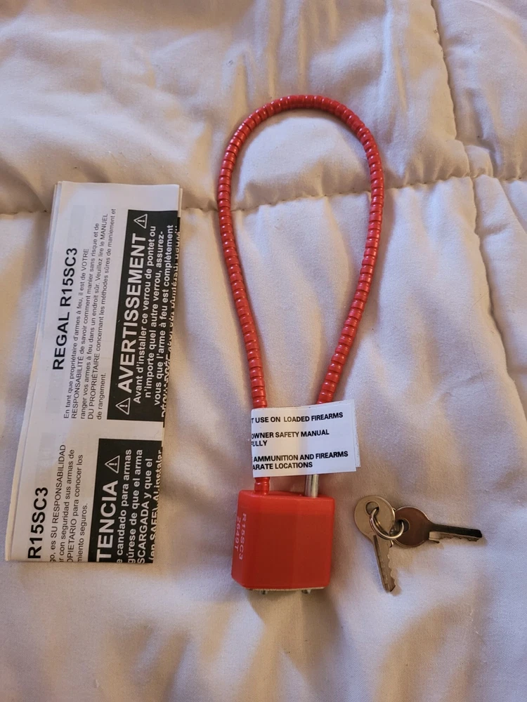 New Regal R15SC3 Red Cable Gun Safety Lock Use With Revolver Rifle Pistol W/ Key