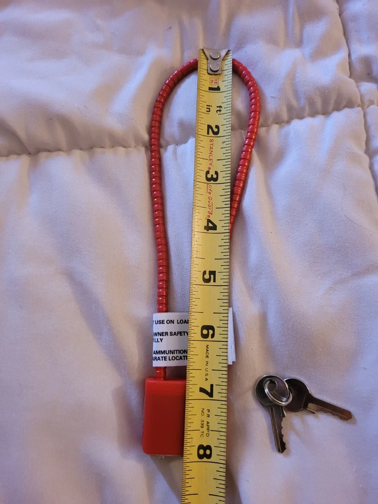 gtin13:Does not applyColor:RedUPC:Does not applyNumber in Pack:1Country/Region of Manufacture:ChinaFeatures:DurableFor Gun Type:RevolverItem Length:7 inMPN:Does Not ApplyType:Cable LockCustom Bundle:NoLocking Mechanism:Regular LockBrand:RegalNumber of Keys:2Material:Steel