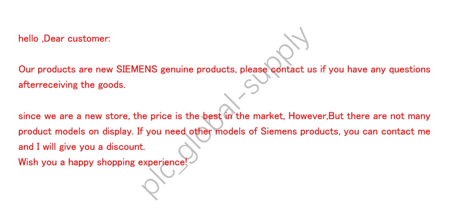 eBay This product is New Siemens 6ES7307-1EA01-0AA0. Because we are a new store, so you can buy the products you want in our store at a low price ,Products are new and genuine, you can rest assured to buy . If you need more informations, or need more quantity, or have other problems. Please contact me in eBay message. More quantity more discounts------>>> Just contact us Shipping: We can ship it from DHL. UPS,FEDEX, etc. We can according to your purchase of specific goods delivery channel choice! If you need to specify the courier service, you can leave us a message on eBay. International Customers(Buyers) are responsible for all Customs fees, import taxes, VAT, and other fees applied by their respective countries You are required to assist in customs clearance if necessary. Feedback: If you have any question about the product when you receive it Please feel free to contact us first We keep our promises that we will provide you with the best solution within 24 hours. We strive for 100% customer satisfaction,therefore, your positive feedback is very important. Thank you. On Dec 10, 2024 at 01:07:29 PST, seller added the following information: