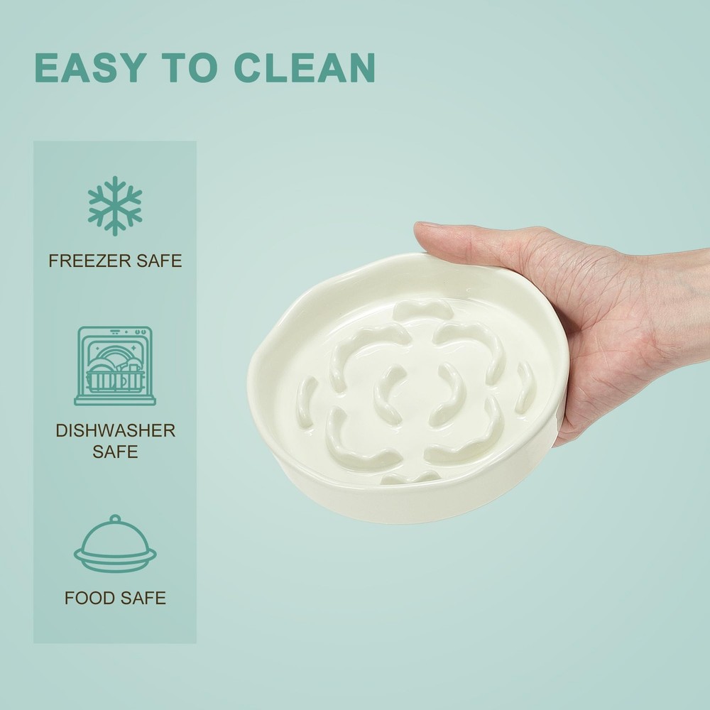 Feature: Slow feeder dog bowls small breed construction offers a sturdy and stable feeding experience for pets The smooth glaze on this dog bowl slow feeder prevents dirt growth and reduces risk of skin irritation Designed with a maze-like interior in this cats slow feeder bowl to naturally slow eating pace Non-slip rubber base keeps the cat slow feeder in place during use Suitable for both small dogs and cats with an ideal capacity Specification: Color: Beige Material: Ceramics Package List: 1 Pc Slow Feeder Dog Bowls NOTE: This ceramic slow feeder bowl promotes healthier eating for small dogs and cats with its maze design, hygienic glaze, and non-slip base. Effective Slow Feeding Design: This ceramic puzzle dog slow feeder bowl features raised obstacles that create a challenging maze for your pet, effectively slowing down their eating pace to support better digestion and help prevent issues like bloating, making mealtime a healthier and more engaging experience Stable Ceramic Construction: Crafted from solid ceramic with a wide, offering added stability for energetic eaters while the smooth, glazed surface resists scratching and is easier to clean than plastic alternatives Prevents Cat Chin Acne: The smooth, non-porous ceramic glaze on this ceramic slow feeder dog bowls prevents dirt buildup, which is a common cause of cat chin acne, and unlike plastic bowls, this material does not harbors odors or residues, promoting a cleaner eating environment and supporting your pet's skin clean Ideal for Small Breeds and Cats: With a ideal capacity and a compact design, this slow feeder cat bowl is suited for small dogs and cats, providing portion control for meals or treats while the thoughtfully designed maze pattern is challenging yet accessible for smaller noses and mouths What You Get: Includes 1 Pc slow feeder dog bowls, providing a complete solution for managing your small pet's fast eating habits in a safe and durable design