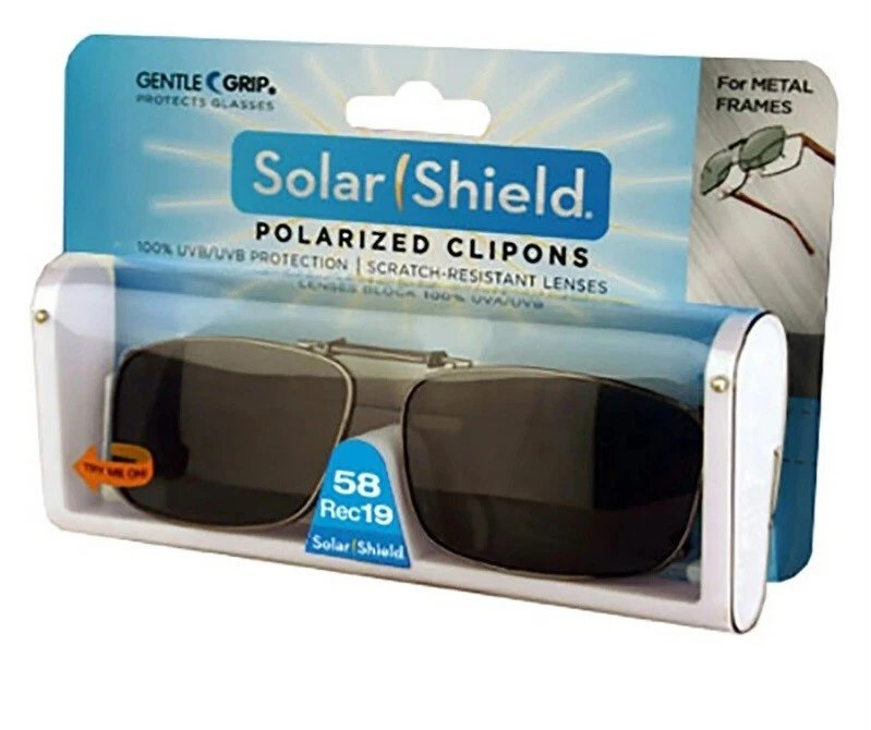 New Solar Shield Polarized Clip on Sunglasses 58 Rec19 Glare Scratch Resistant. Condition is brand new in the package. Shipped with usps mail.