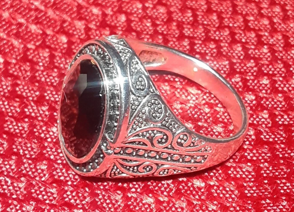 The "New Stainless Steel Black Onyx Royal Court Ring" is a striking piece of jewelry designed for those with a regal and sophisticated style. The ring features a bold black onyx stone set in a durable stainless steel band, giving it a sleek and modern look. With a ring size of 9, this piece is perfect for adding a touch of elegance to any outfit, making it a versatile accessory for any occasion.