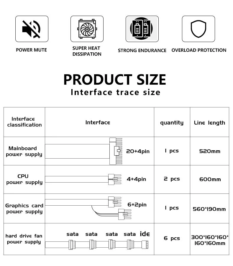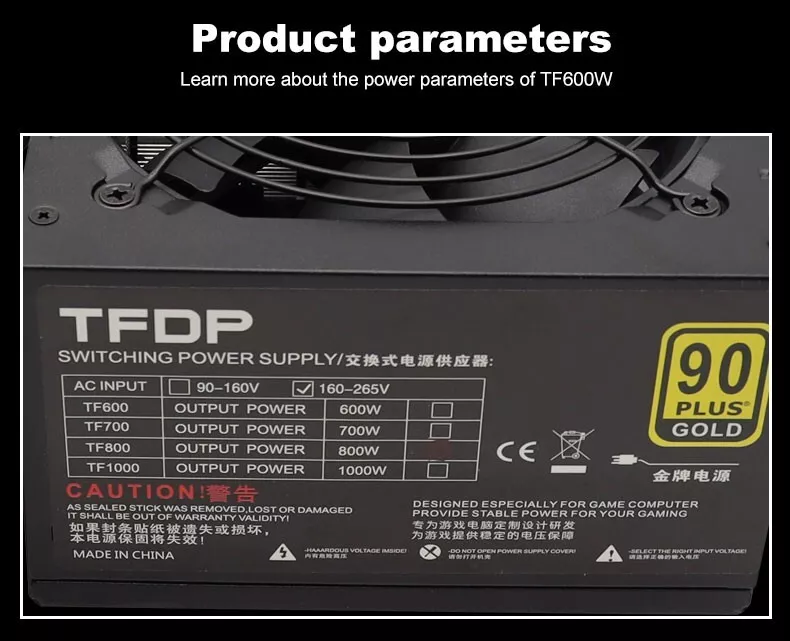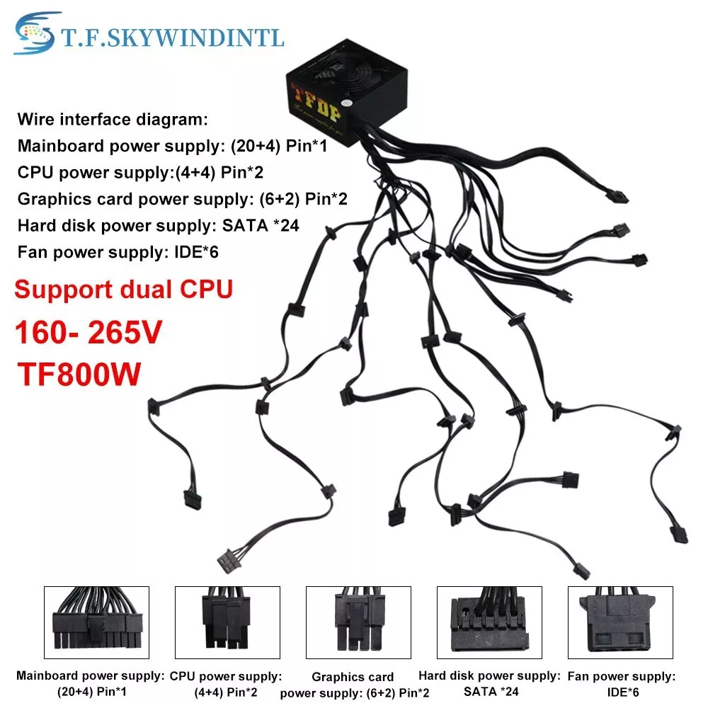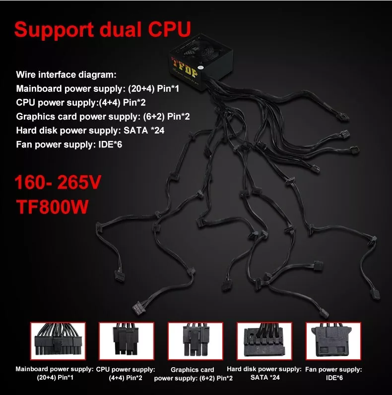 New TFDP 800W Fully Modular ATX Power Supply 90 PLUS Gold Silent Fan Connectors