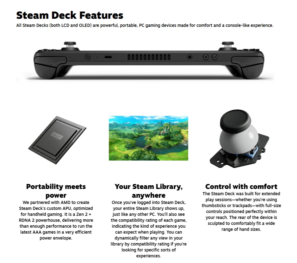 New in the box Fully sealed with a one-year warranty!!! The Valve Steam Deck 512GB Handheld Console is a portable gaming device designed by Valve. It features a sleek black design with a 1280x800 resolution display and a storage capacity of 512GB, allowing for ample space to store games and other media. The handheld system also includes Wi-Fi capability for online gaming and downloading content, along with a headphone jack for immersive audio experiences. Perfect for gaming on the go, the Valve Steam Deck offers a convenient and versatile way to enjoy a wide range of video games.