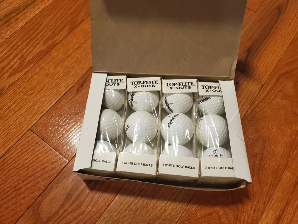 Size: Standard Golf Ball Ball Type: X-Outs Item Weight: 2 Pounds Number in Pack: 12 gtin13: 029321111912 MPN: 70935B Personalize: No Brand: Top Flite Theme: Golfing UPC: 029321111912 Vintage: No Gender: Unisex Number of Items in Set: 1 Model: Top-Flite X-Outs Color: White Letter Grade: Unknown Modified Item: No Sport/Activity: Golf