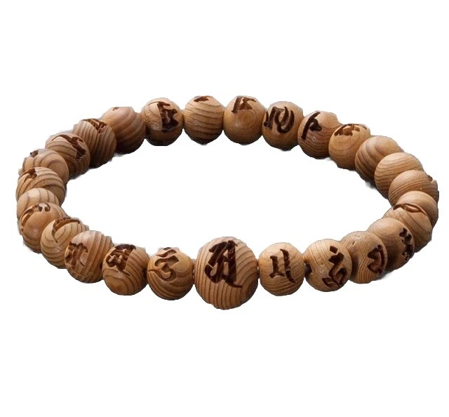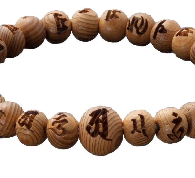 This is a Takita YakuSugiwood bracelet from Japan, featuring a charming design with brown wooden beads. The bracelet is styled in a spiritual theme, inspired by Buddhist language and the teachings of Kukai. The use of YakuSugiwood, a type of cedar native to Japan, adds an antique and traditional touch to the piece. Perfect for those who appreciate spiritual and cultural elements in their accessories, this bracelet is a unique and meaningful addition to any jewelry collection.