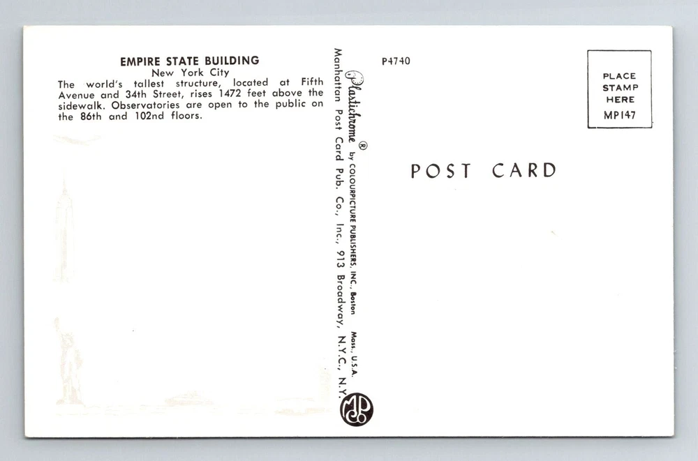 Subject: Cities & Towns Country/Region of Manufacture: Unknown Unit of Sale: Single Unit Postage Condition: See Image City: New York City Era: Vintage Country: USA Region: New York Original/Licensed Reprint: Original Theme: Cities & Towns Type: Printed (Lithograph)