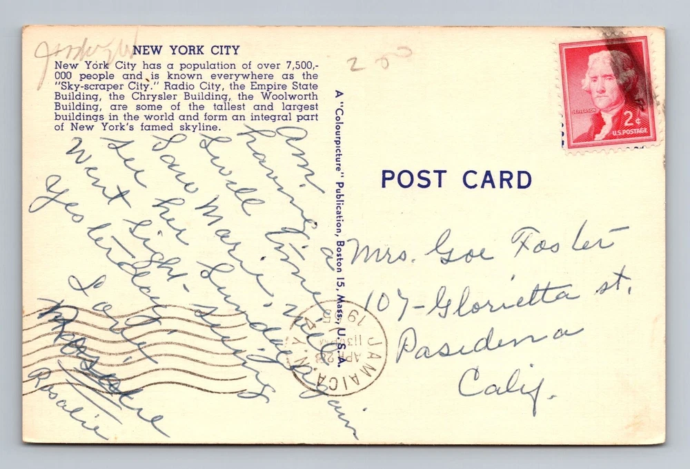 Era: Vintage Theme: Cities & Towns Material: Paper Country/Region of Manufacture: Unknown Original/Licensed Reprint: Original Postage Condition: Posted Region: New York Country: USA Unit of Sale: Single Unit Subject: Cities & Towns Size: Standard (5.5 x 3.5 in) Type: Printed (Lithograph) City: New York City