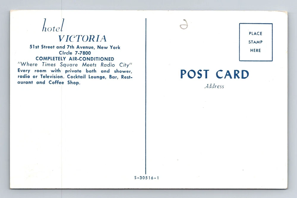 New York City NY-Hotel Victoria, Souvenir, Antique, Vintage Postcard