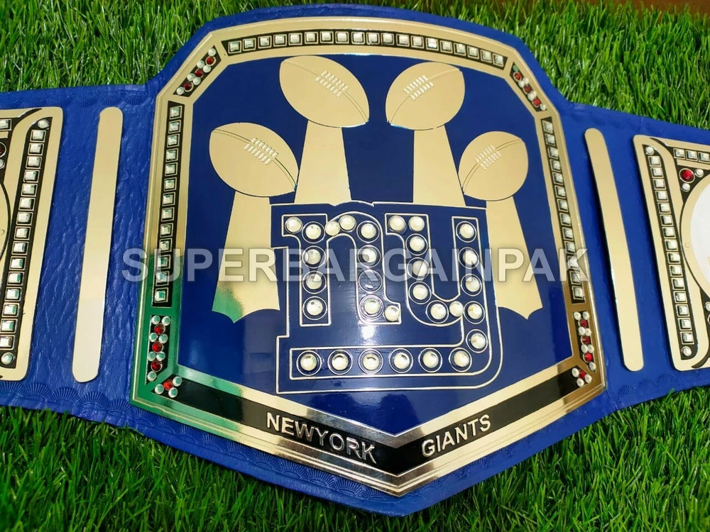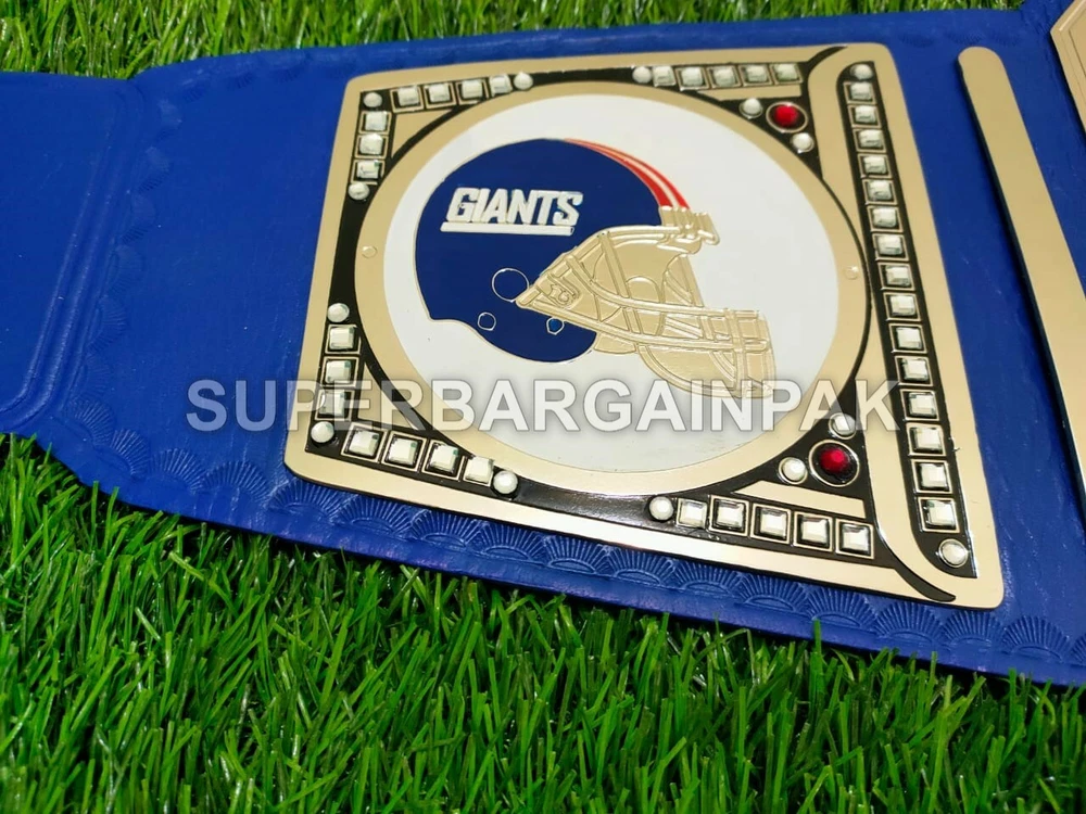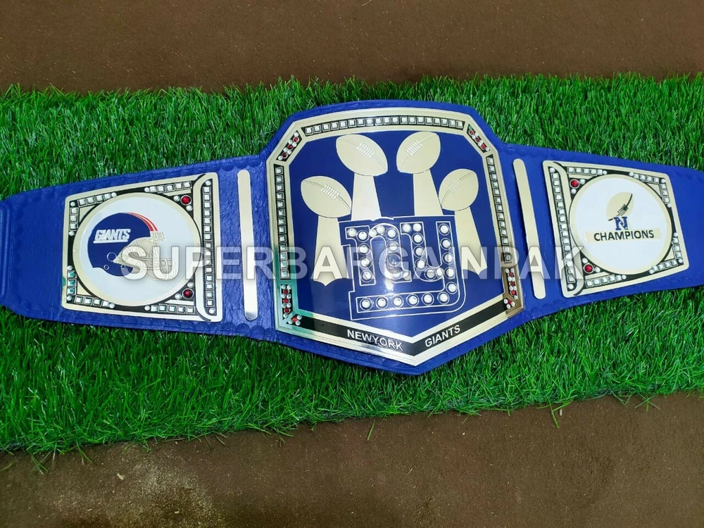 Welcome to our shop ------------------------------------------- We are specialist in manufacturing handmade products:: Our wide range of products include: >>>>Championship Belts WWE | WWF | AEW | UFC | WBC | WCW MINI SIZE ALSO AVAILAVLE FOR CHILD Product Description *** New York Giants Championship Belt Adult size *** Plate Metal: Brass (Zinc available on request with additional cost) Strap: 100% Leather Largest Waist Size: Fits upto 46'' Belt Length: ~50" Weight: 4.17 lbs | 2.01 Kg Plate Thickness: 2mm (4mm Version available on demand with additional cost) ::The belt is well crafted and manufactured to meet the quality demands of fans:: Get your hands on this marvelous piece now! Note: If you need further details kindly inbox us, we will try to be as responsive as possible. ------------------------------------------- Return Policy: Generally we don't have much complains on our products and we make sure to 100% satisfy our clients. We send the product in well Bubble Wrapped packaging so there is highly unlike chance of getting damaged item. In case there is a damage, we will try to give partial refund or you can ask for full refund within 30 days after returning the belt to origin. NOTE: 1. If you have placed the order by mistake or you have purchased a wrong item then we are not going to refund that. 2. Buyer will pay the shipping fee of returning the belt. ------------------------------------------- Happy Shopping! :)