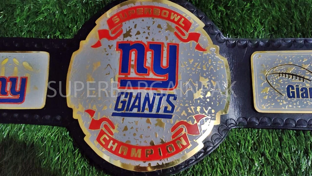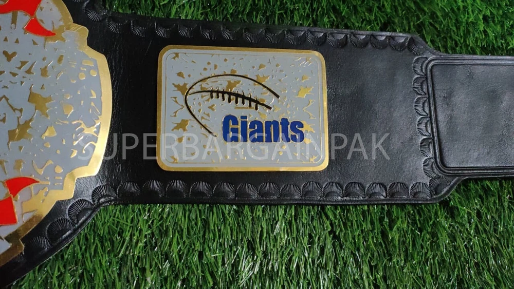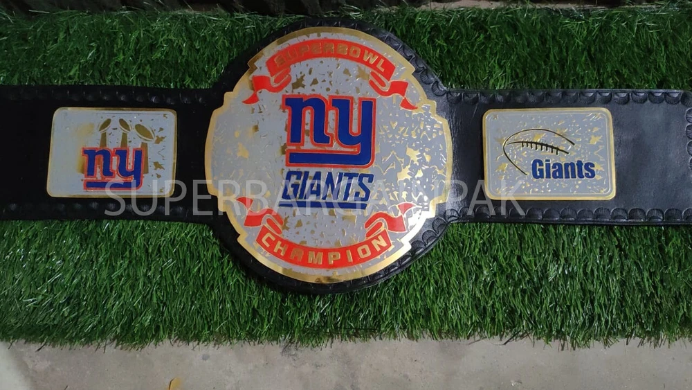 Welcome to our shop ------------------------------------------- We are specialist in manufacturing handmade products:: Our wide range of products include: >>>>Championship Belts WWE | WWF | AEW | UFC | WBC | WCW MINI SIZE ALSO AVAILAVLE FOR CHILD Product Description *** New York Giants Championship Belt Adult size *** Plate Metal: Brass (Zinc available on request with additional cost) Strap: 100% Leather Largest Waist Size: Fits upto 46'' Belt Length: ~50" Weight: 4.17 lbs | 2.01 Kg Plate Thickness: 2mm (4mm Version available on demand with additional cost) ::The belt is well crafted and manufactured to meet the quality demands of fans:: Get your hands on this marvelous piece now! Note: If you need further details kindly inbox us, we will try to be as responsive as possible. ------------------------------------------- Return Policy: Generally we don't have much complains on our products and we make sure to 100% satisfy our clients. We send the product in well Bubble Wrapped packaging so there is highly unlike chance of getting damaged item. In case there is a damage, we will try to give partial refund or you can ask for full refund within 30 days after returning the belt to origin. NOTE: 1. If you have placed the order by mistake or you have purchased a wrong item then we are not going to refund that. 2. Buyer will pay the shipping fee of returning the belt. ------------------------------------------- Happy Shopping! :)