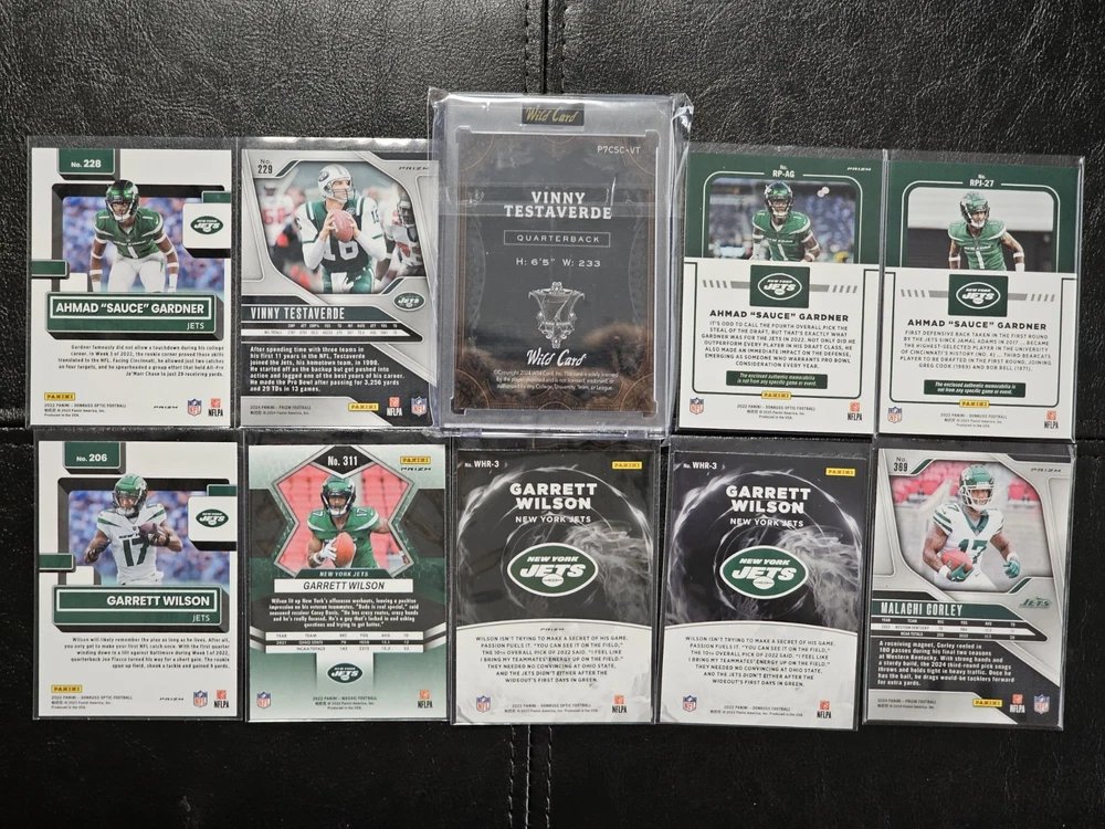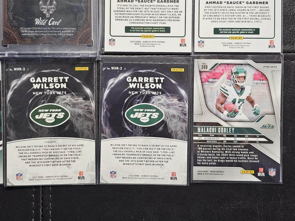 New York Jets Card Lot Garrett Wilson RC, Sauce Gardner RC & Patch Vinny SP