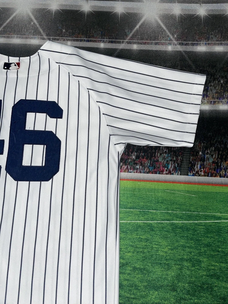 We try our best to fit the best description possible , condition and pictures please fill free for any questions or concerns thanks Step up your game day experience with the New York Yankees Andy Pettitte #46 Majestic Jersey. This youth-sized 14/16 jersey lets the young fan show their support in true Yankee style. It features the classic white color, complemented by the iconic pinstripes synonymous with the team's heritage. Perfect for cheering during the regular season, this jersey ensures the next generation of fans can feel a part of the action. Crafted with quality fabrics, this jersey offers both comfort and durability for everyday wear or game day festivities. Majestic, known for their high standards in sports apparel, delivers a piece that resonates with the spirit of baseball and the legacy of Andy Pettitte. Whether it's for a game or just to show off their Yankees pride, this jersey is a must-have for any young fan's collection.