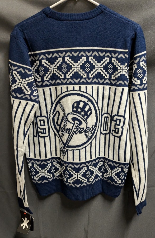New York Yankees Bronx Bombers Official MLB Ugly Sweater. Brand new, never worn and in amazing condition! Comes in Blue, White and Men's Size Small. Please see measurements below: Pit to pit: 18" Length: 26"