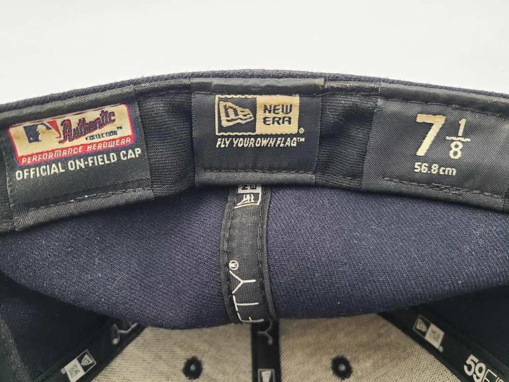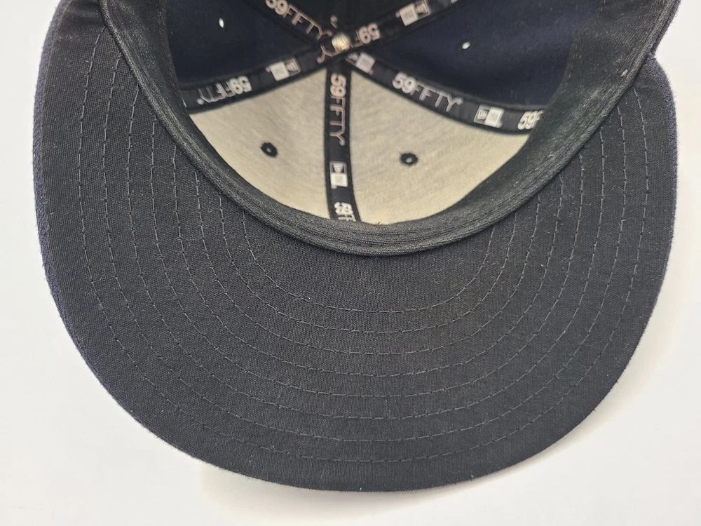 Has some wear on the back and underneath the brim as seen in photos. New York Yankees New Era 59Fifty Fitted 7 1/8 Hat Cap MLB Baseball Blue White. EACH ADDITIONAL HAT PURCHASED IS ONLY $1 ADDED SHIPPING!