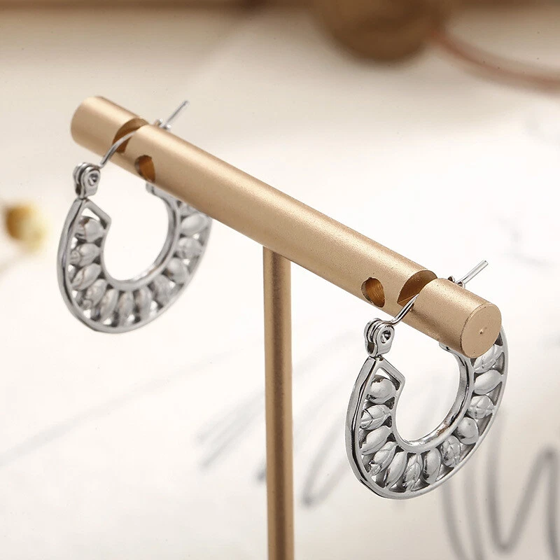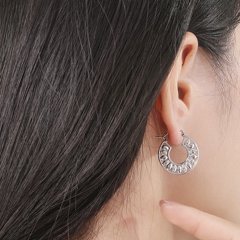 Women Hoop Earrings 925 Sterling Silver Big Egg Shape Oval Shiny Event Jewellery