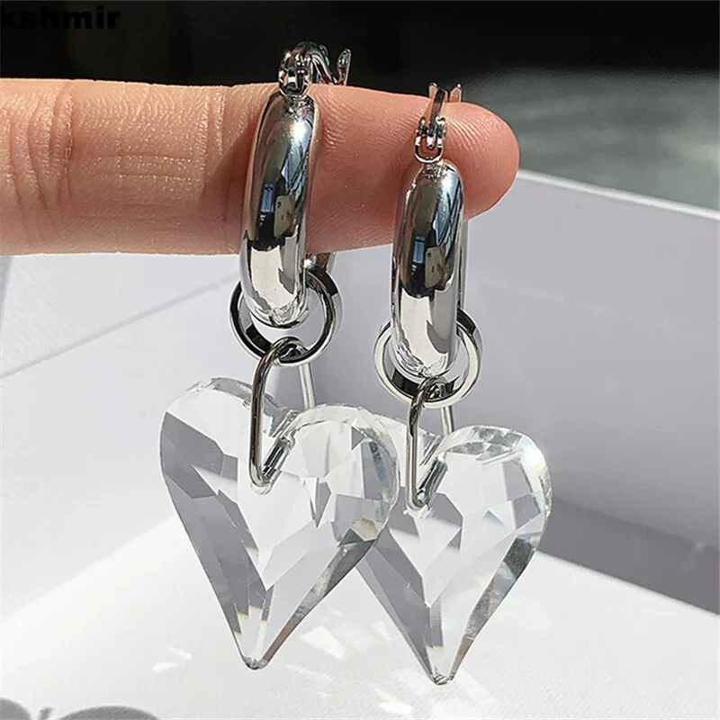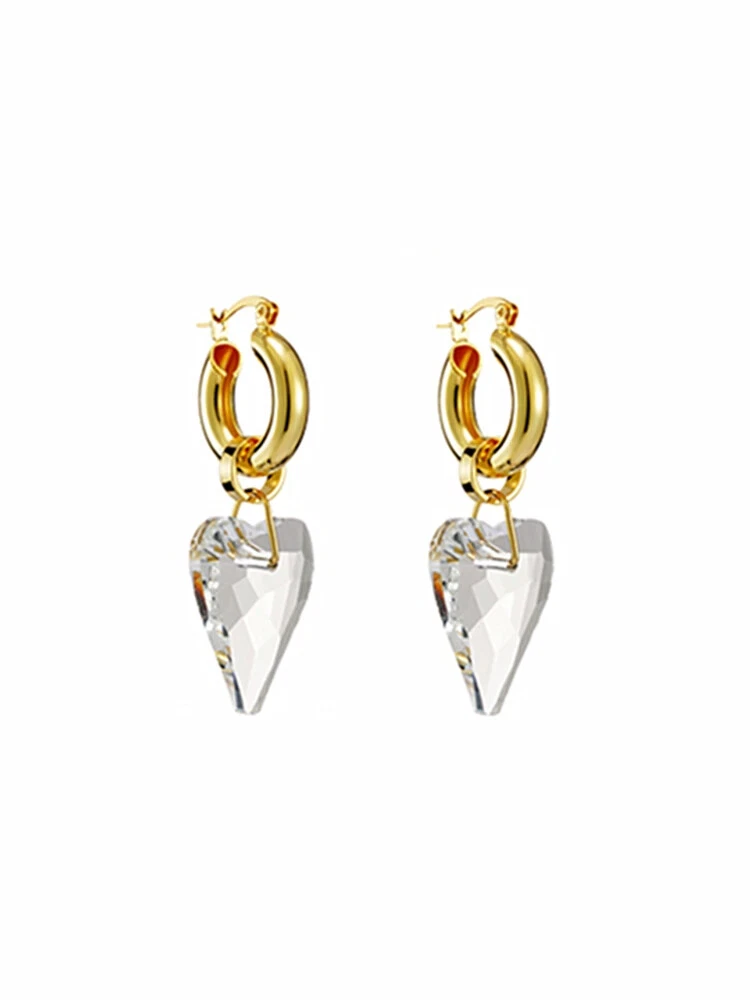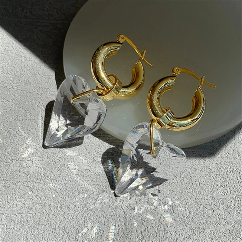Project: New transparent heart-shaped crystal earrings a pair of ear buckle senior sense of temperament ear accessories female wholesale Material: Titanium alloy +18k gold plating Size: as shown Gender: Female/female/lady/girl Shape: geometry Color: As shown Occasion: Party/office/leisure/gift