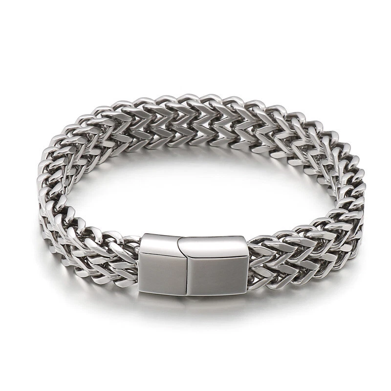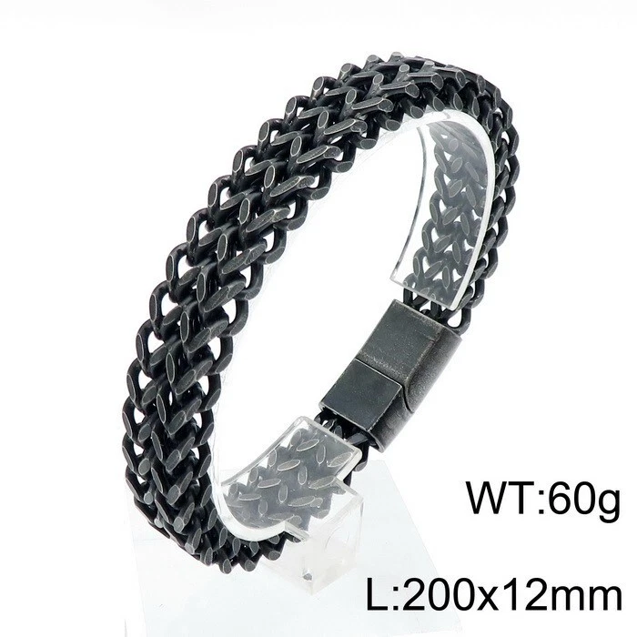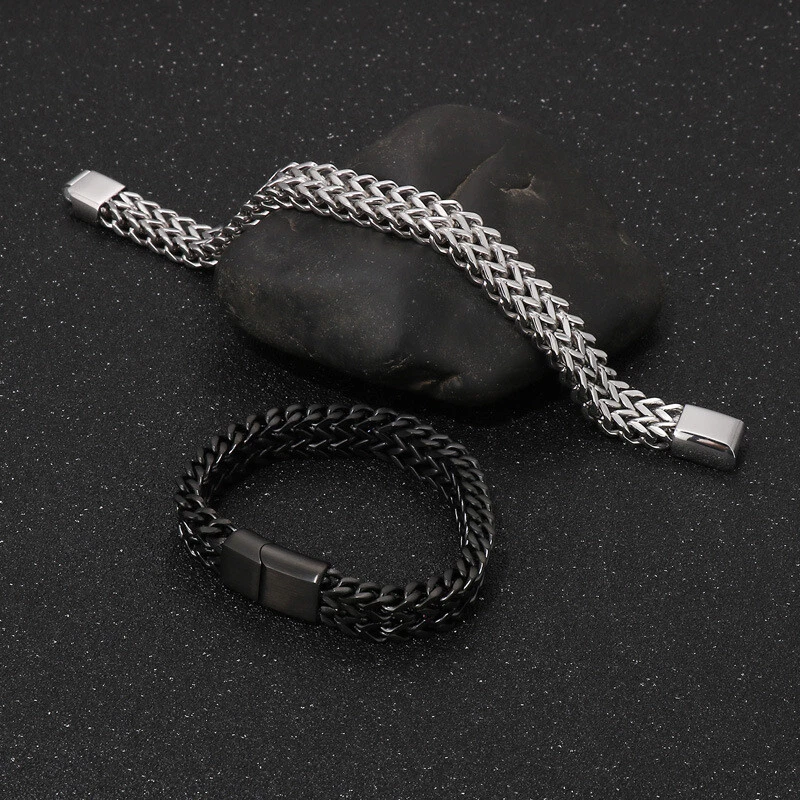 New woven double row reversible keel flat buckle titanium steel men's bracelet