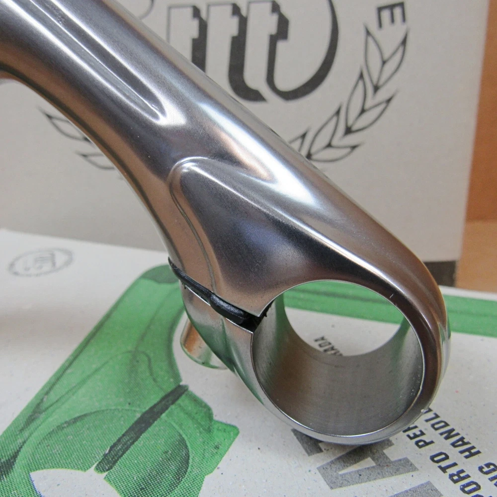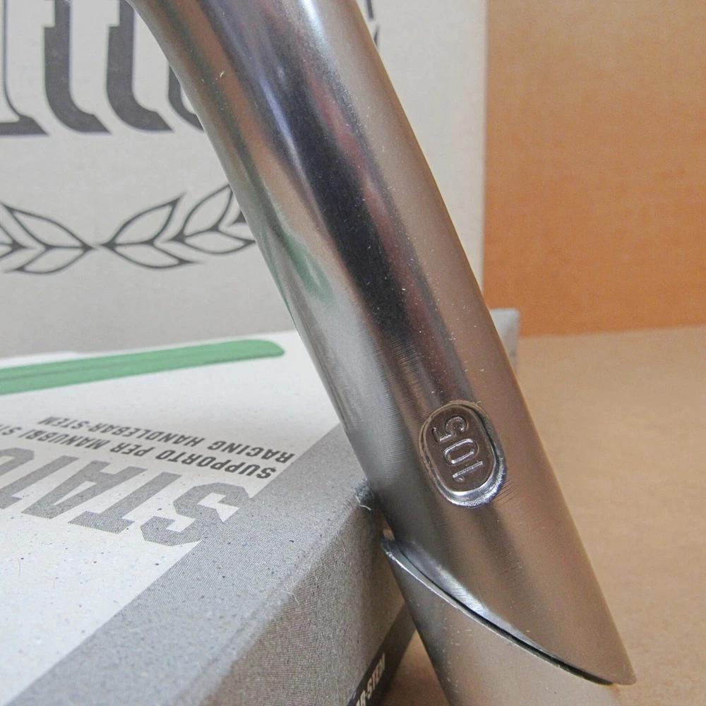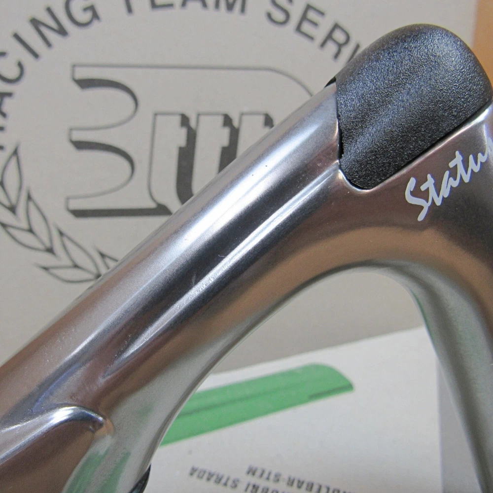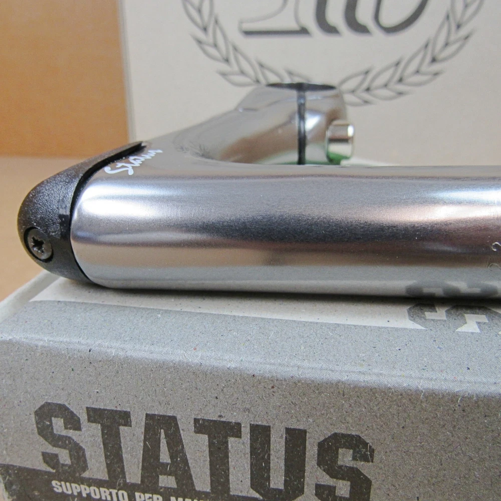 New-Old-Stock 3T Status Quill Stem w/Gray Finish (25.8 mm / 26.0 mm clamp x 105 mm length)...Nice Clamp Expansion Design Feature Thank you for your interest in this item and please visit our store for other offerings. We have very reasonable shipping terms and combine orders to save money (for customers) on shipping costs. We also maintain customer friendly return/refund/exchange policies. Product Description: This item for sale is a new-old-stock 3T Status quill stem. These Italian made stems are very good quality, as they are forged from an aluminum alloy (AL 6082) and were positioned as one of 3T's "Racing Team Services" quill stems (so manufactured to withstand the stresses and demands of competitive cycling/racing). We also like the brownish gray (anodized) finish, as it compliments the stem's sleek styling (which is somewhat unique...the styling that is...among 3T's competition level quill stem offerings). Some of it's more prominent design features and specs include the following... Body length: 105 mm (measured from a profile view of the stem body as a straight line that extends from the center of the quill to the center of the bar clamp) Body angle: 72 degrees (or said another way...a negative 18 degree rise) Quill length: 75 mm (the distance between the limit line and the top of the quill...inclusive of the dust cover, if applicable) Clamp: 25.8 to 26.0 mm (fairly common sizing for many vintage drop handlebars) Quill diameter: 22.2 mm (common size compatible with most 1" threaded forks) Weight: 255 grams (per our digital postal scale and inclusive of all mounting hardware) We also want to point out the 3T Status model is one of only a few Racing Team Services' models (with forged aluminum alloy construction) that has a one-piece clamp design and a partially hidden clamp bolt (meaning the clamp bolt is nicely tucked away on the underside of the stem body). We mention this because some of our colleagues believe there may be inherent weakness in stem clamps when the design includes a detachable face plate or is hinged in some manner. The thought here is that anything other than a solid/continuous (one-piece) design using forged alloy materials is going to result in potential weakness at the pivot (hinged) points or anchor points (in the case of detachable face plates). We do not have any hard data to substantiate these claims, but we thought the discussion points were still worth noting. Having said all of this, we do believe (and think most would agree) that a solid one-piece clamp design is at least equal in strength and durability to the other designs available on the market. The drawback, of course, is the inconvenience of handlebar installation relative to some of these other designs (although, as noted below, 3T modified the design of the traditional one-piece clamp with their Status model to facilitate the handlebar install/uninstall task). It's been our experience that most of these one-piece clamps are only threaded in the main body of the stem. In other words, a clamp bolt will slide through the first section of the bolt-hole, but will not thread until it reaches the the bolt-hole section in the main body of the stem...at which time the clamp bolt will thread and cinch down on the handlebars. The 3T Status stem is different in that it's bolt-hole is also threaded in this first section. 3T's reason for this added design feature is to aid in the expansion of the stem clamp to facilitate handlebar installation. This is accomplished by completely unthreading the clamp bolt, pulling out the rubber washer/spacer and inserting/holding a coin (or equivalent small/flat metal object) in place of the rubber washer/spacer. Once the coin is in place, re-thread the clamp bolt until the end of it comes into contact with the coin. At this point, continue to slowly thread the clamp bolt and the added pressure applied to the coin (while not allowing the clamp bolt to enter the main body of the stem) will slowly expand the stem clamp opening without marring the finish on the bars or stem. The bars still have to be clean (meaning no tape, cable, levers, etc.) to install/uninstall them...so this feature is still not the equivalent of a hinged design or detachable face plate in terms of convenience. However, we thought the preservation of cosmetic condition during the install/uninstall process with one of these stems was still worth noting...and a nice feature not commonly found on stems with solid one-piece clamp designs. We are spending a little more time inspecting each of these retail boxed stems, as we near the end of our stocks. Honestly, we may be splitting hairs with some of these inspections, as none of them are cosmetically perfect upon close scrutiny. Although, any cosmetic issues are usually fairly minor and may consist of, among other things, small blemishes in the form of forging/finishing imperfections coming out of the factory. In other words, we sometimes observe small/shallow dimples, pin-sized holes, thin lines, etc. in the stem body that appear to be the result of an imperfect forging process. We believe this to be something that occurred at the factory, because the anodized finish does not appear to be disturbed in these areas...meaning the finishing/anodizing process was completed after the forging imperfections were created. We also see some instances where the stem may not have been properly cleaned prior to the anodized finishing work. More specifically, there may be some other small cosmetic irregularities on the stem body (i.e., there may be some small/residual metal pieces, etc. that should have been cleaned/removed from the stem body, but were instead covered by the anodized finish). Lastly, we will sometimes identify some shopwear (i.e., light scuffs/scratches) in the anodized finish that is likely the result of several years of storage time. Listing Update...We have begun updating the pictures to reflect the next stem that will sell/ship. Although, please keep i