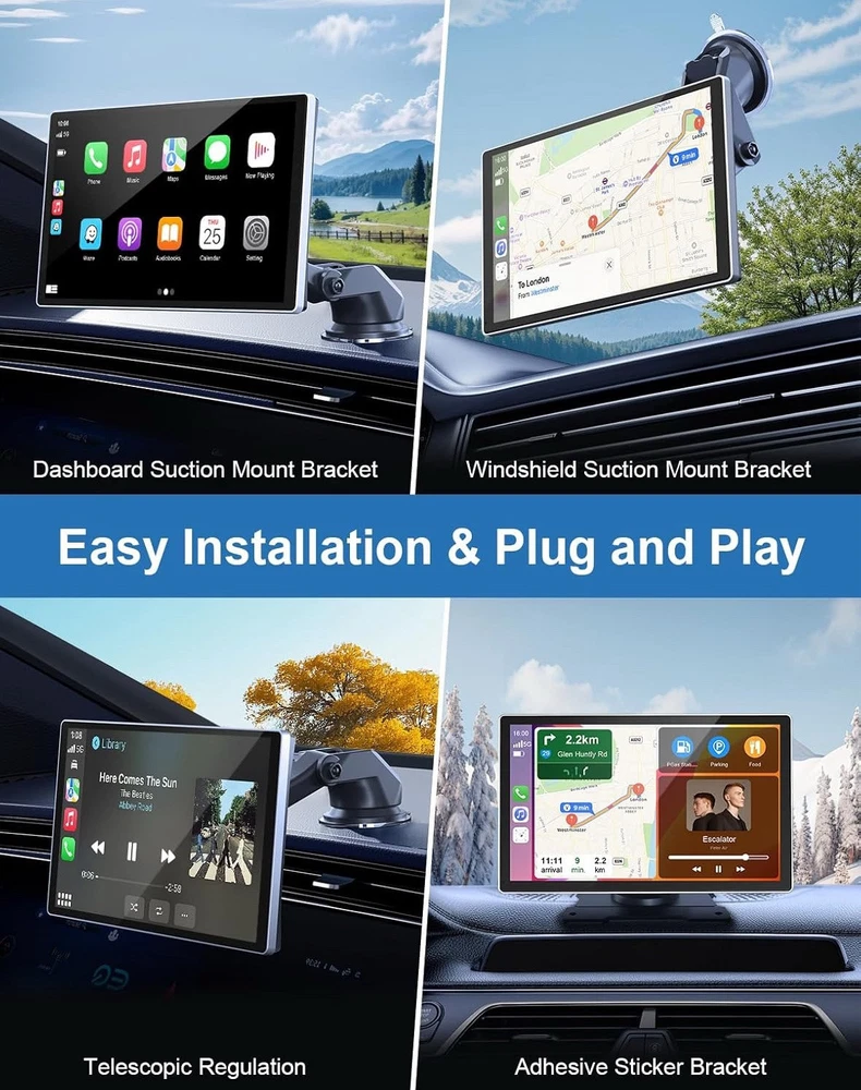 Brand New wireless Portable Carplay Screen for Car, 9" Wireless Carplay Android Auto Screen with 4K Dash Cam & 1080P Backup Camera, Car Play Stereo with Voice Control & GPS Navigation, Mirror Link, BT/FM/AUX Box still sealed.
