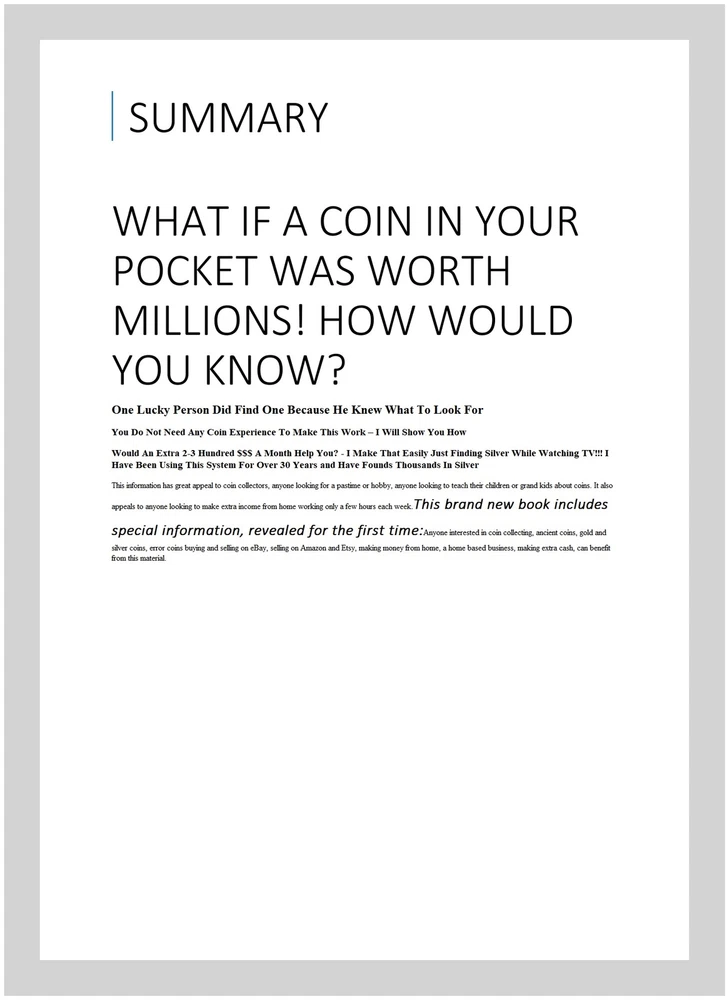 Newbie Guide to Finding Valuable Coins in Pocket Change! : Man Finds $126,500 Penny in His Pocket; Bonus Section; Guaranteed Way to Find Silver in Change Every Time, Paperback by Sommer, Sam, ISBN 1984170732, ISBN-13 9781984170736, Brand New, Free shipping in the US What If A Coin In Your Pocket Was Worth Millions! How Would You Know? One Lucky Person Did Find One Because He Knew What To Look For You Do Not Need Any Coin Experience To Make This Work – I Will Show You How Would An Extra 2-3 Hundred $$$ A Month Help You? - I Make That Easily Just Finding Silver While Watching TV!!! I Have Been Using This System For Over 30 Years and Have Founds Thousands In Silver This information has great appeal to coin collectors, anyone looking for a pastime or hobby, anyone looking to teach their children or grand kids about coins. It also appeals to anyone looking to make extra income from home working only a few hours each week. This brand new book includes special information, revealed for the first time: Anyone interested in coin collecting, ancient coins, gold and silver coins, error coins buying and selling on eBay, selling on Amazon and Etsy, making money from home, a home based business, making extra cash, can benefit from this material.