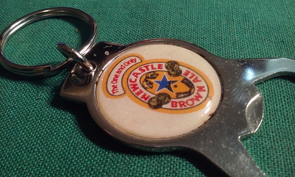 Newcastle Brown Ale Beer The One and Only Bottle Cap Opener Advertising Promo Keychain Keyring.
