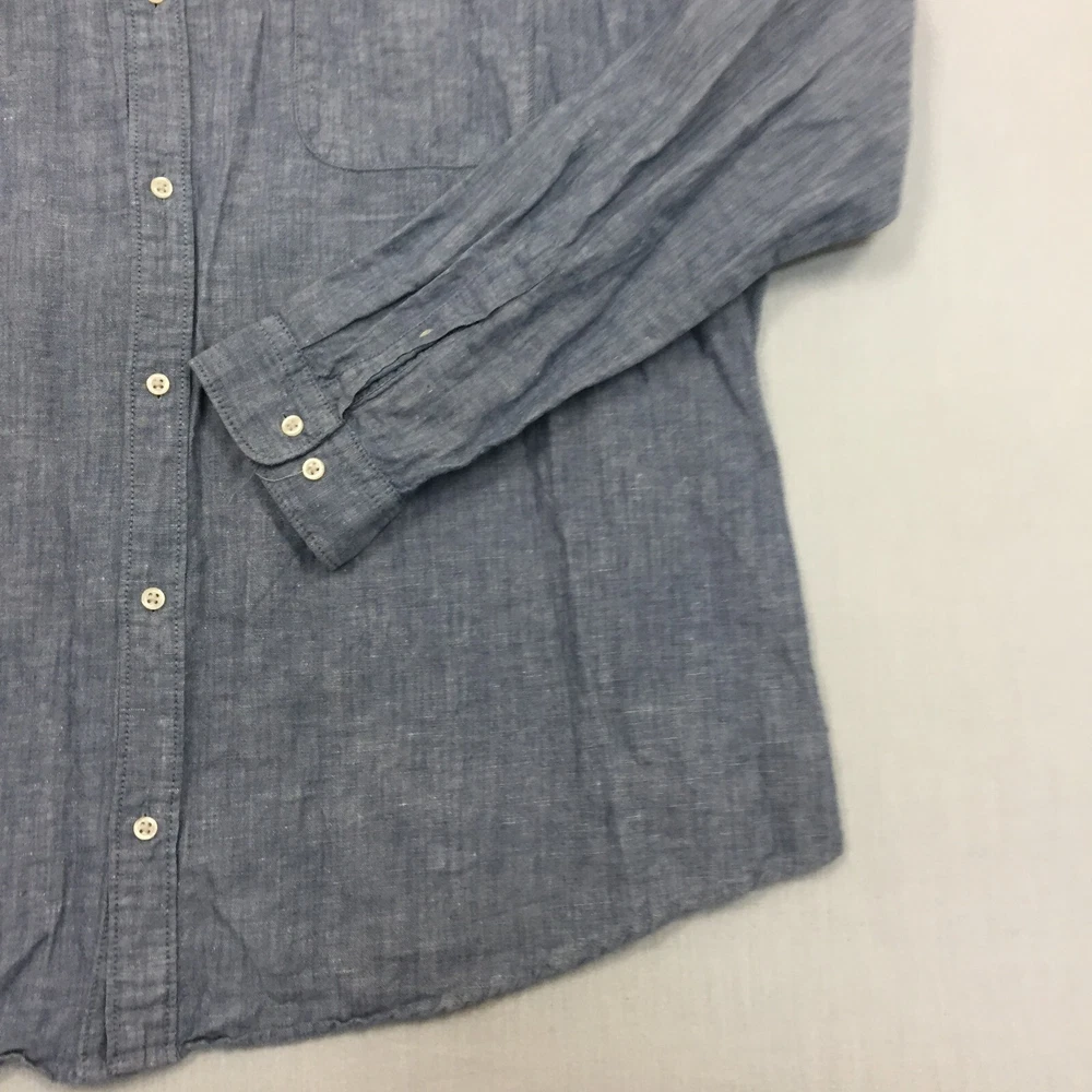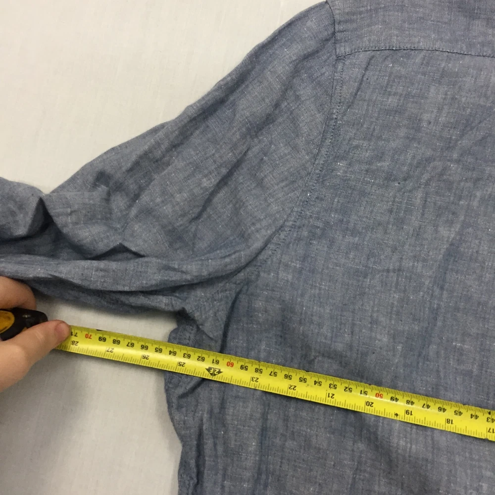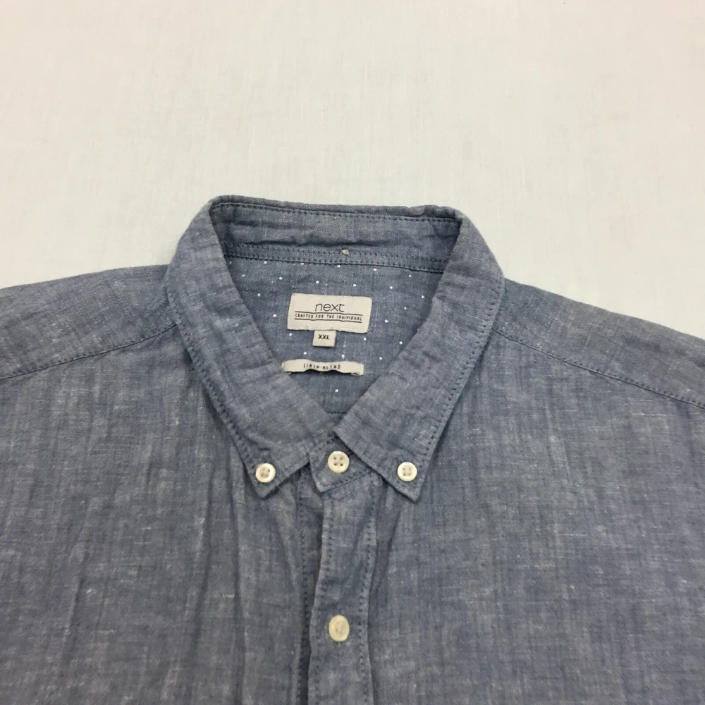 Next Linen Mix Shirt Mens XXL Button Up Long Sleeve Blue (2XL)