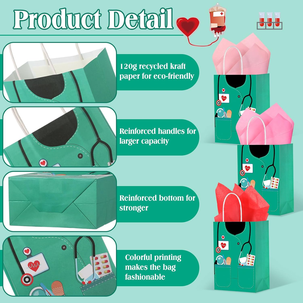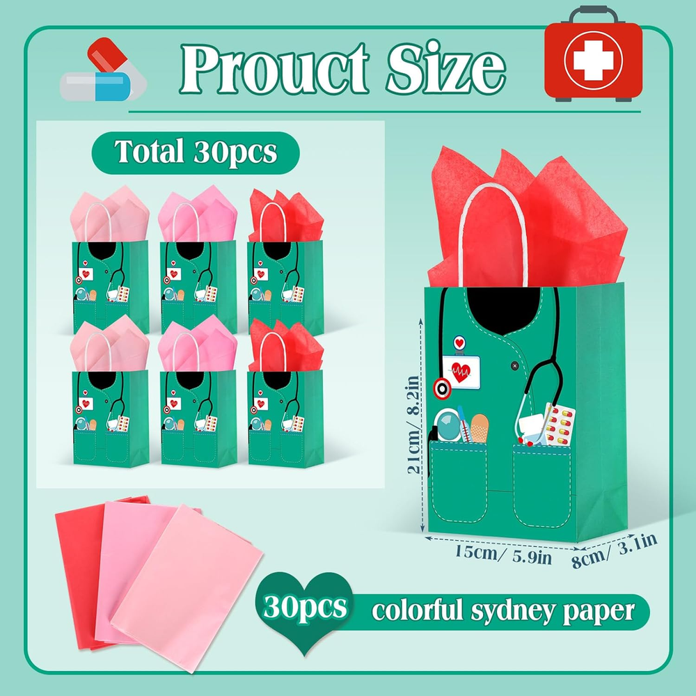 Store New Arrivals Add to Favorite View Feedback Contact Nezyo 30 Pcs Nurse Gift Bags with 30 Wrapping Tissue Papers Nurses Appreciation Week Gifts Bags Stylish Nurse Appreciation Gifts for Thank Party Memorable Nursing Assistant Graduates Medical (Green) Description Unit Count 1.0 Count Number of Items 60 Color Green Pattern Solid Brand Nezyo Material Paper Theme nurse-related Occasion Nursing-related occasions Product Dimensions 8.2"L x 5.9"W x 3.15"H Included Components Tissue Paper Tremendous Value in Every Set: this comprehensive package includes 30 pieces of nurse gift bags and 30 pieces of about 19.69 x 19.69 inches wrapping tissue papers in pastel colors; This assures you abundant quantity and diverse elements that can meet your graduation party requirements and replacements, ensuring that every medical school graduate nurse, comes away with a heartfelt and memorable appreciation gift Properly Sized for Maximum Convenience: each nurse goodie bag measures about 8.2 x 5.9 x 3.15 inches; This makes them an ideal size for creating RN Graduation party decorations and ample enough to store numerous items like candies, small toys, or chocolates, guaranteed to impress and delight the guests Quality Paper Material: these nurse appreciation week gift bags are constructed from quality, robust, and dependable paper; Their quality ensures that they can be applied repeatedly without fail, helping you create an unforgettable atmosphere for your nursing graduation party while promoting safe use Designed with Nurse Appreciation in Mind: every nurse bag is crafted with a distinct handle design that enhances portability and comes decorated with nurse related illustrations or illustrations showcasing nurses' tools; This makes their suitability as appreciation return gifts for hard working nurses, a subtle yet poignant acknowledgment of their dedication to preserving our health and wellbeing Versatile and Appropriate for Various Occasions: the paper bag with handle is specifically designed to meet the gift giving needs of doctors, nurses and their coworkers, making it suitable for hospitals, clinics, offices, supermarkets, and more; It's ideal for gift packaging for a variety of festivities like a nursing graduation party, RN graduation party, medical party, nurse week, nurse day, etc Product Description ABOUT US We offer the best prices around on high quality products. Our E-store includes media such as books, movies, music and games while offering electronics, toys, sporting apparel, clothing, tools, general home, garden items and more. SHIPPING We are always working hard to ensure your package arrives as soon as possible. Please understand that some factors like weather, high postal traffic, and the performance of shipping companies are outside of our control. We offer free shipping to the lower 48 states and ship within 2 business days of payment, usually sooner. We do not accept P.O. Boxes. Please provide a physical address. RETURNS We offer a 30-Day Return Policy on items which you are not completely satisfied with. You have the option for a full-refund or an exchange of the item. No returns are available on items shipped outside of the USA. PAYMENT We accept PayPal. CONTACT US This page content is yet to come Please ad us to your favorite seller and visit again later Thank You CUSTOMER SATISFACTION We try our very best to make sure every customer is completely satisfied. If there's a problem, message us! We're happy to help.