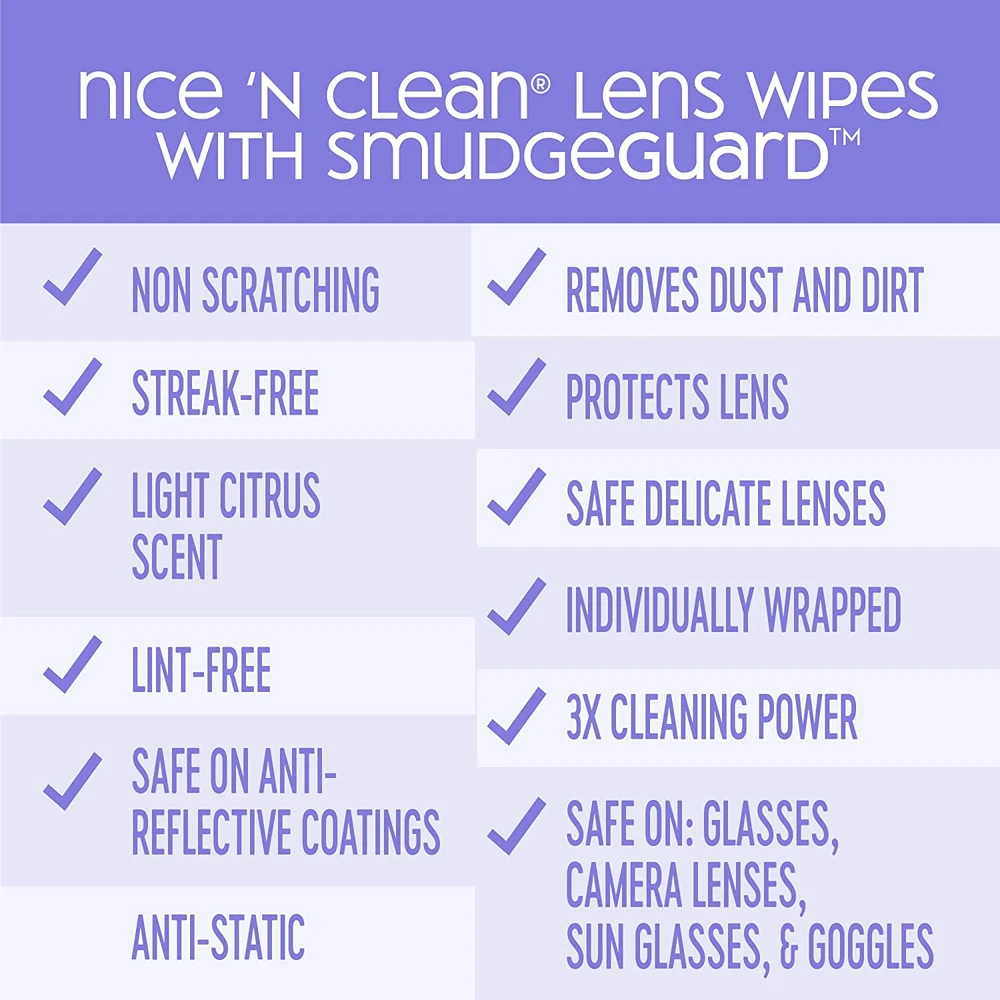 Store New Arrivals Add to Favorite View Feedback Contact Nice 'N Clean Smudgeguard Lens Cleaning Wipes (100 Total Wipes) | Pre-Moistened Individually Wrapped Wipes | Non-Scratching & Non-Streaking | Safe for Eyeglasses, Goggles, & Camera Lens Description Item model number X0001B100CH Scent Citrus Product Dimensions 3.07 x 4.53 x 3.94 inches; 9.91 ounces Sheet Count 100 Package Information Box Item Form Wipes Size 100 Count (Pack of 1) EFFECTIVELY REMOVES DUST AND DIRT: Nice N' CLEAN SmudgeGuard Lens Cleaning Wipes gently remove dirt and dust from a variety of coated lenses. SmudgeGuard technology allows for 3X the cleaning power compared to our standard lens wipes! PROTECT YOUR LENS: Our pre-moistened lens wipes provide streak-free and scratch-free removal of dust, smudges, and fingerprints on eyeglasses, camera lenses, sunglasses, goggles, and safety eyewear. SAFE ON ALL DELICATE LENSES: With an ammonia-free formula, our wipes are effective and safe on glass lens, plastic lens, and anti-reflective coatings. They are suitable for device lenses too, including iPhone, computer, and laptop video camera lenses. INDIVIDUALLY-WRAPPED: Each wipe is pre-moistened (unlike microfiber cloths) and individually-wrapped for convenience and moisture retention. They can be used on-the-go and kept in purses, backpacks and more for use at home, school or office environments. MADE FROM PLANT-BASED FIBERS: Our wipes are made from sustainable, plant-based fibers! These wipes are free of dyes, parabens, chemical binders, alcohol, chlorine, phthalates, etc. Life moves fast, and you want to be there to take in every moment. Nice 'N CLEAN Lens Wipes gently remove dust and dirt from a variety of lenses without leaving streaks or scratches, giving you the clarity you need to truly enjoy life. SmudgeGuard technology allows for 3x the cleaning power while providing streak-free and scratch-free removal of dust, smudges, and fingerprints. Our pre-moistened and individually-wrapped wipes are designed for on-the-go convenience for travel and storage purposes. These lens wipes are perfect for glasses, eyeglasses, sunglasses, goggles, camera lenses, and binoculars. ABOUT US We offer the best prices around on high quality products. Our E-store includes media such as books, movies, music and games while offering electronics, toys, sporting apparel, clothing, tools, general home, garden items and more. SHIPPING We are always working hard to ensure your package arrives as soon as possible. Please understand that some factors like weather, high postal traffic, and the performance of shipping companies are outside of our control. We offer free shipping to the lower 48 states and ship within 2 business days of payment, usually sooner. We do not accept P.O. Boxes. Please provide a physical address. RETURNS We offer a 30-Day Return Policy on items which you are not completely satisfied with. You have the option for a full-refund or an exchange of the item. No returns are available on items shipped outside of the USA. PAYMENT We accept PayPal. CONTACT US This page content is yet to come Please ad us to your favorite seller and visit again later Thank You CUSTOMER SATISFACTION We try our very best to make sure every customer is completely satisfied. If there's a problem, message us! We're happy to help.