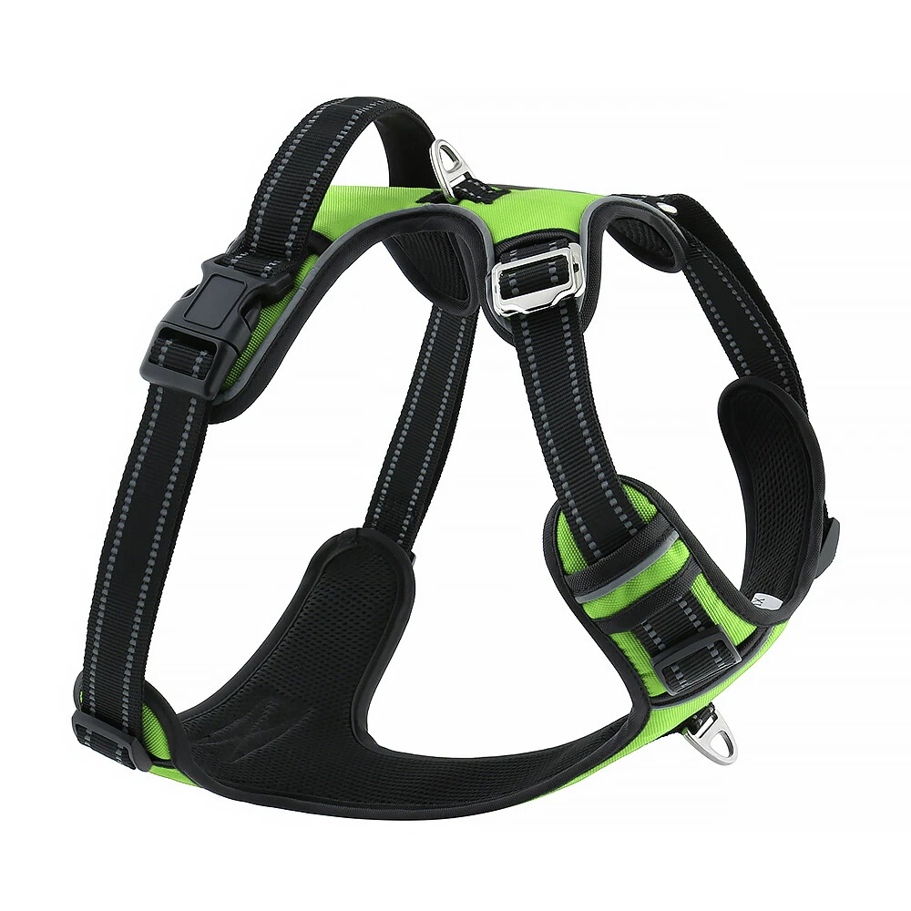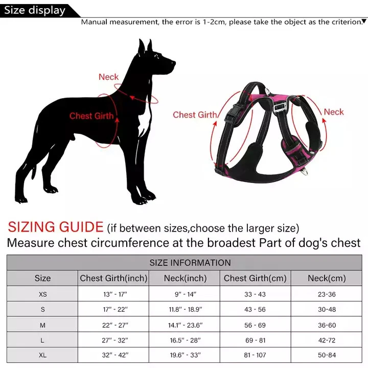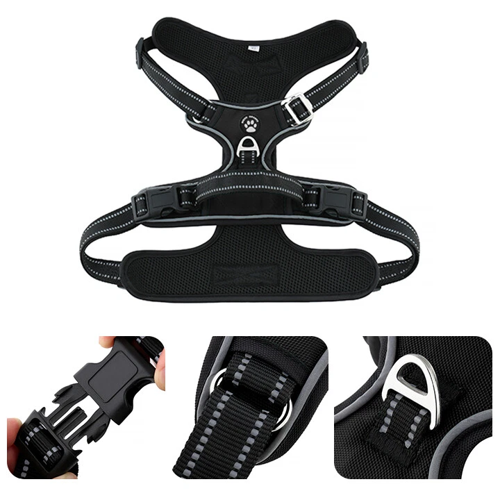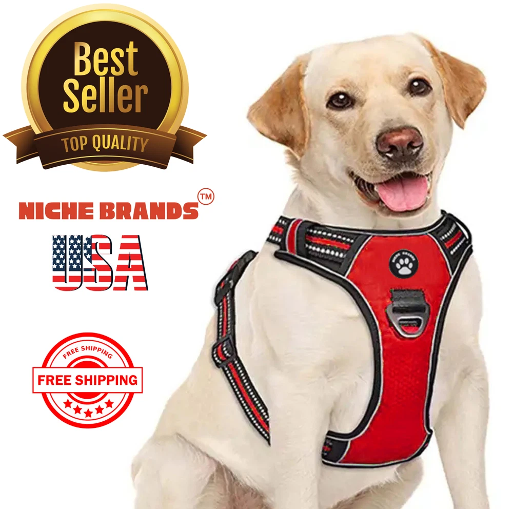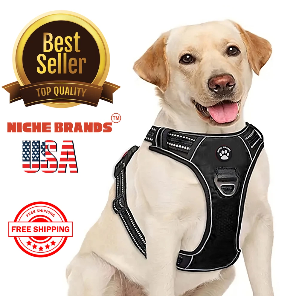 Niche Brands™ No-pull No-Choke dog harness is the ultimate solution for dog owners who want to keep their furry friends safe and comfortable while walking. Made with high-quality materials and featuring a unique design , this harness distributes pressure evenly across the chest and back to prevent choking and pulling on your dog's neck. The padded chest panel and adjustable sizing ensure a secure and comfortable fit for dogs of all sizes, while the reflective strips keep your dog visible in low light conditions. The easy-to-use buckle and leash attachment make it a breeze to put on and take off, even for the most active dogs. Adjustable Weight Pulling Harness Dog Harnesses Best Holiday Gift you could give to your Dog. Holiday SALE - 5% Off Product Description 🐶 [ NO PULL - CHOKE RESISTANT ] - NICHE BRANDS Designer non-pull adjustable dog harness with handle features RUSTPROOF Zinc Alloy dual metal D-rings, on both sides of the dog vest. The front D-Ring helps redirect your dog's forward motion, and the back ring is perfect for a casual dog walk, jogging, hiking, training. The four Adjustable straps fit various dogs with different body shapes. With 2 easy buckles on belly straps and 1 more lockable quick release buckle on the neckline, you don’t need to slip over the dog’s head to adjust the straps all the time. 🐶 [ Pet-friendly REFLECTIVE Material ] - Our durable dog vest is made of 1200D Oxford Fabric with sturdy stitching, suitable for long-time use. Breathable padded mesh design keeps air circulation around your dog’s body and protects your dog’s skin during outdoor activities. Reflective/Lighted straps guarantee you a safe and wonderful late-night walk 🐶 [ FIT for All ] - The harness comes in different sizes and fits SMALL/MEDIUM/LARGE/XL size fur friends. Refer the sizing guide for neck and chest girth and get the purrfect size for your furry friend. Large Dog Harness fits even the fluffiest dog 🐶 [ EASE TO USE AND SECURE LOCKING ] - The dog harness with simple design, Front clips and quick snap buckles which make it easy to put on and take off. Locking feature on both snaps makes it more secure, 100% ensures NO accidental detachment. 4 easy size adjustors at neck and chest for easy adjusting to fit your dog perfectly, even with some room of growth. Perfect training vest for daily walking, running, hiking, training, hunting, outdoor adventure and more! 🐶 [ EASY CLEANING ] - Harness material is dust resistant and Machine washable and hence easy for daily use. All metal accessories are rust-proof and provides long term Durability. 🐶 [ DURABILITY ] - Made of durable nylon webbing, enhanced high density nylon oxford, breathable mesh lining and strong accessories including buckle, size adjustors making it the best harness for dog. 🙏 Customer Service - Our customers’ amazing shopping experience is always our Priority. If you have any problems while using our products, please feel free to let us know. Our customer service will effectively solve your problem in 24 hours. Niche Brands pet supplies is a company that is passionate about providing high-quality, unique and innovative products for pets. Our mission is to create a brand that pet owners can trust and rely on for their pet's needs. We understand that every pet is different and has unique needs, which is why we offer a wide range of products that cater to different lifestyles and preferences. Package includes: 1 x No Pull Dog Pet Harness Adjustable Control Vest Dogs Reflective S M Large XL Shipping Information: Free shipping - Your item Ships Same Day to 1 Business Day