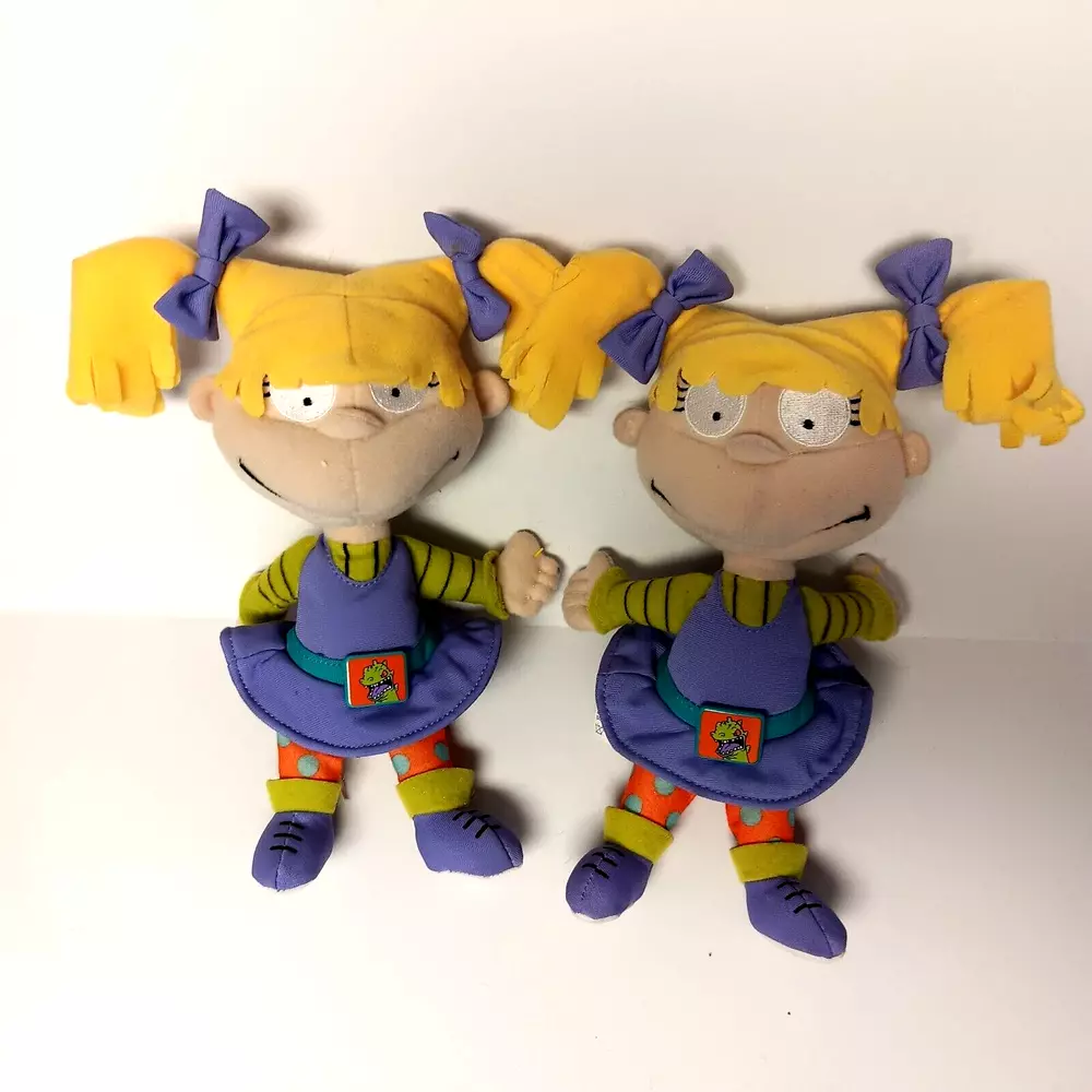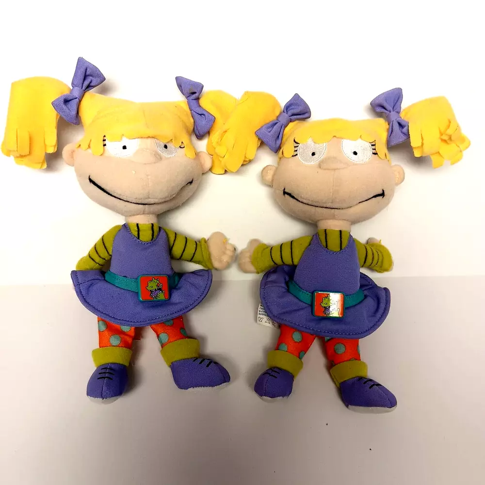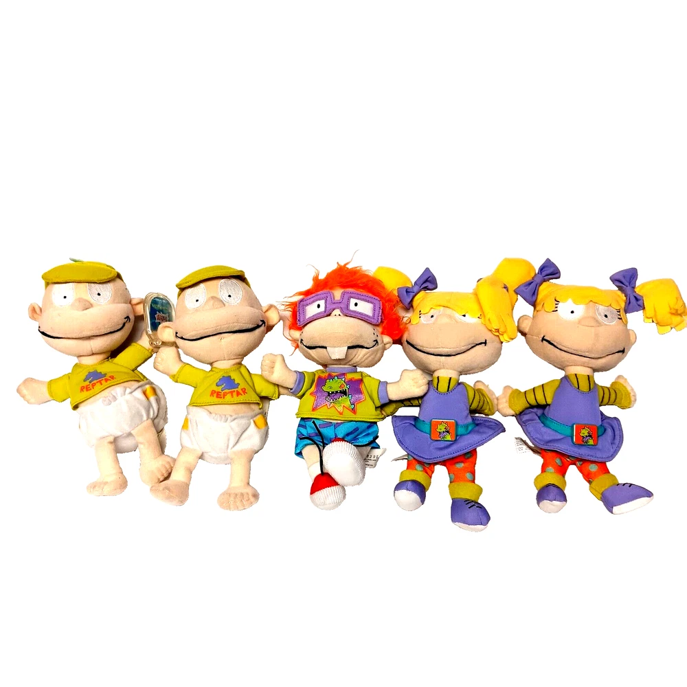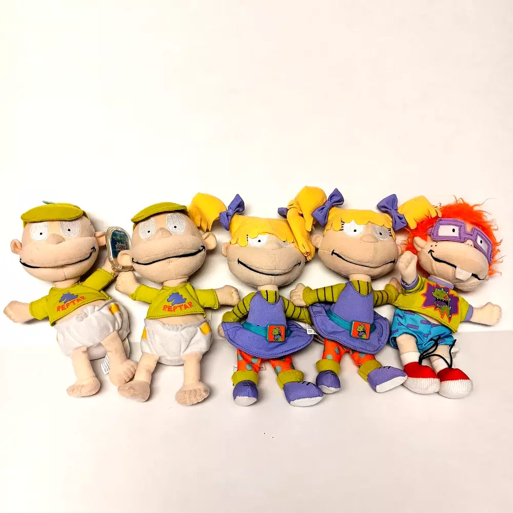 This vintage lot of Rugrats plush toys includes Chuckie Finster, Reptar, Angelica, Tommy Pickles, and more. These small (6-14 in) stuffed animals come in multicolor designs and were manufactured in China by Mattel in 1998. The set is perfect for all occasions and features retired characters from the popular Rugrats franchise. Each plush toy in this lot is in great shape and ready for display or play. Whether you're a collector or just looking for some nostalgic fun, this Rugrats plush collection is sure to delight. Don't miss out on the chance to own these classic stuffed animals. Rugrats Set of Five Plush Chuckie Finster Reptar Angelica Tommy Pickles 1998 VTG Tommy Pickles New with Tag and Tommy Pickles pre-owned Angelica Pickles pre-owned, one has tag that is not attached Chuckie Finster with raptor outfit pre-owned Approximately 9 inches x 6 inches See photographs for condition and measurements Mattel Star Bean Viacom Nickelodeon Good condition Total 5 plush toys 1829KF Vintage