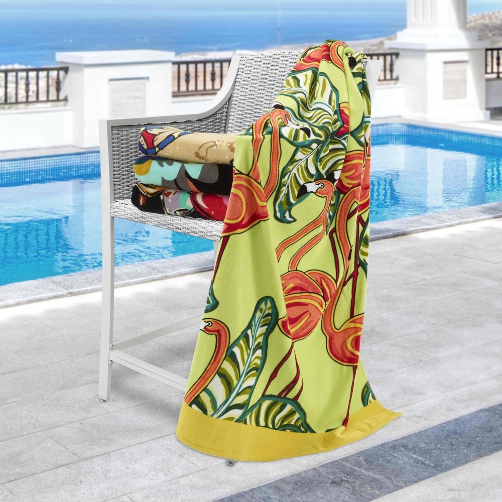 This beach towel is a game-changer! Super soft, super absorbent, and the perfect size for lounging by the pool or beach. The cotton velour feels luxurious, and the vibrant print adds a fun touch. Washes well without losing its plushness—definitely worth it for summer days!