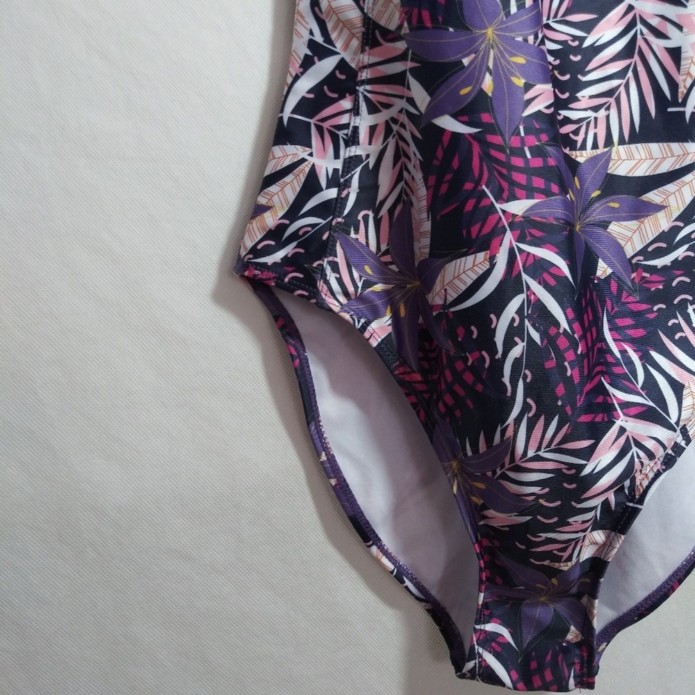 This swimsuit is a total gem! The racerback design is super flattering and stays put while swimming. The purple floral print is vibrant and stylish, and the fully lined fabric feels comfortable and secure. The shelf bra adds just the right amount of support without being restrictive. Fits true to size—perfect for beach days or lounging by the pool. Love the like-new quality!