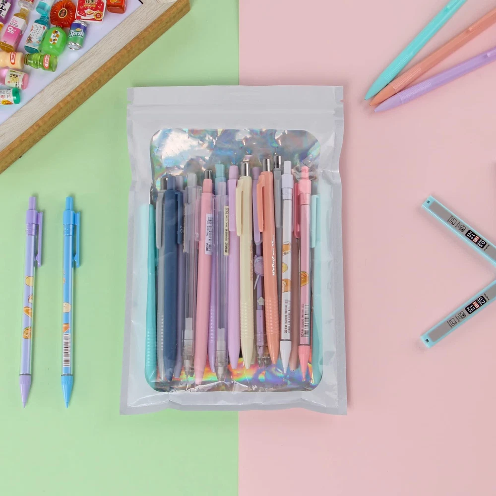Features:Professional pencils set comes with mechanical pencils, erasers and refills, which can meet people's various needs. Besides, Here's a very nice plastic bag to hold all your pencils and you can store your stationery well.Fancy pencils gift set is a best gift for school season, graduation ceremony, birthday parties. They also can be applied as school prize or class rewards for students. , Cute mechanical pencil can be applied for a long time.Value Package:13 X 0.5 mm mechanical pencils13 X 0.7 mm mechanical pencils16 of the 26 drafting pencils come with top small erasers2 tubes eraser refills3 X 0.5 mm black lead refills3 X 0.7 mm black lead refillsMaterial: PlasticColor: colorful 【Mixed Mechanical Pencils】: The exquisite mechanical pencil set come with 26 pcs drawing pencils (13 pcs 0.5mm and 13 pcs 0.7mm), 6 tubes of lead refill in 0.5 mm & 0.7mm, 18 cap eraser refills. 【Smooth Writing】: It's pre-loaded with black lead, NO needs sharpening, create clear, precise lines. 0.5 & 0.7mm medium point is ideal for a variety of everyday writing and drawing. 【Featuring Colorful Barrels】: Various styles of cute mechanical pencils for kids, girls, boys and adults. You can share your mechanical pencil with your friends. 【High-Quality Lead】: The good lead doesn’t smudge and erases cleanly. so your work looks very neat. With the 26 pack of mechanical pencils, you can write with style all year long. 【With Exquisite Packaging】They’re the perfect mechanical pencils for school supplies.We provide beautiful packaging for you to carry and give as gifts to friends.Nicpro offers dependable performance and value.