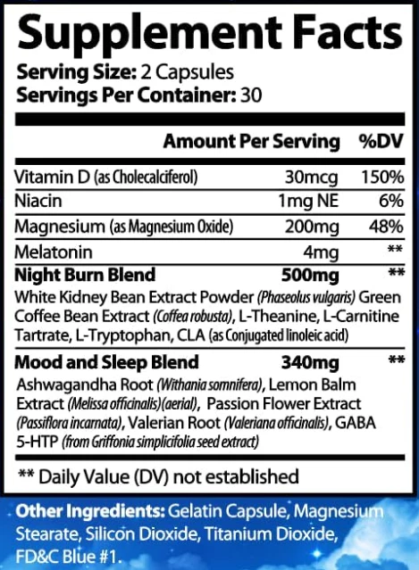 Night Time Fat Burner Supplement For Weight Loss Metabolism Appetite Suppressant US Warehouse - FREE & FAST Shipping in US Product Description: These statements have not been evaluated by the FDA. This product is not intended to diagnose, treat, cure, or prevent any disease or health condition. Fast-Acting Weight Loss Support: Our Night Time Fat Burner is specially designed to support weight loss while you sleep, helping you wake up feeling lighter and leaner. Appetite Suppressant and Metabolism Booster: The powerful combination of natural ingredients not only helps to suppress your appetite but also boosts your metabolism to burn fat more efficiently. Effective Carb Blocker and Belly Fat Reducer: This potent formula helps to block carb absorption and specifically targets belly fat, aiding in overall weight loss and improved body composition. Natural Sleep Support: The addition of ingredients like L-theanine and Ashwagandha Root supports restful sleep, allowing your body to focus on recovery and rejuvenation. Quality Ingredients for Men and Women: Carefully formulated with Green Coffee Bean, Ashwagandha, and other potent natural ingredients, this supplement is suitable for both men and women seeking a healthier, leaner physique. Feedback: 1.Any question for your order, please contact us in time, we will reply to you within 24 hours and give you a satisfactory answer. 2.If you are satisfied with our products and services, hope to take up your a little precious time to leave feedback reviews for our products.Thanks! 3.Your satisfaction is our effort. Welcome to order again! Have a great day! Our Policy: 100% Satisfaction Guarantee 20% of restocking fee will be charged for return item