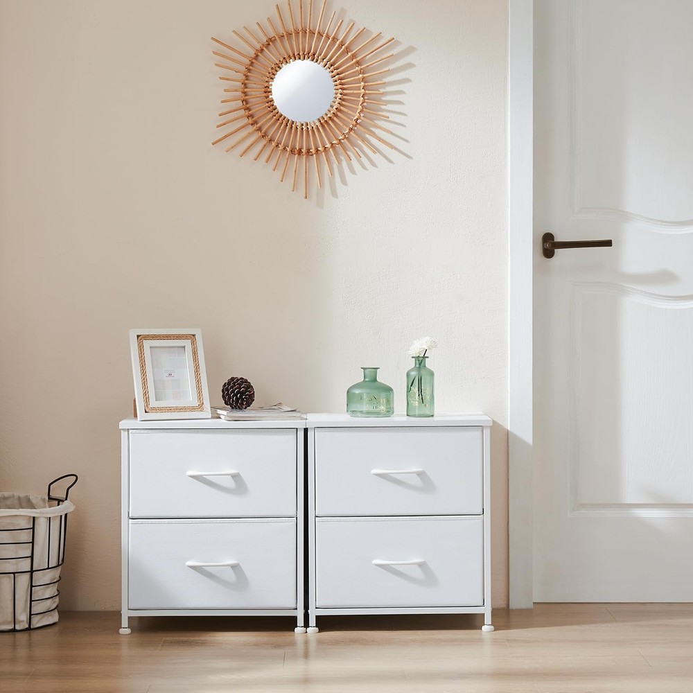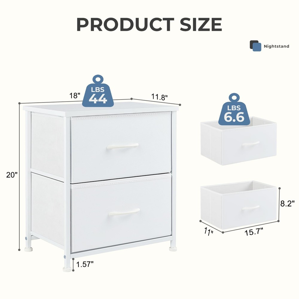 【Nightstand for Bedroom】The nightstand with 2 storage drawers is a versatile and functional piece of furniture that offers ample space for organizing and storing various items. Whether it's clothes, accessories, or miscellaneous items, the drawers allow for easy organization and quick retrieval of items when needed. With a height of 20 inches, it is the perfect size for placing next to a bed, providing easy access to essentials, such as books, glasses, and a lamp. 【Wooden Top & Fabric Drawers】the nightstand features a wooden top, which not only adds an elegant touch to the overall design but also provides a sturdy surface for easy cleaning, ensuring that any spills or messes can be quickly wiped away. The fabric cabinet of the nightstand is another key feature that sets it apart. The fabric adds a soft and inviting texture design and complements the wooden top perfectly. 【Compact Size & Durable】This nightstand is ideal for small rooms such as apartments, college dorms, or entryways. It maximizes storage capabilities without taking up excessive space. This allows it to serve as a mini dresser, accommodating clothes or accessories in an organized manner, making it an excellent choice for those with limited storage options. The nightstand is also designed with durability in mind. It is made from high-quality metal and fabric. 【 Adjustable Feet & Lightweight】The adjustable feet allow it to adapt to different surfaces and heights, ensuring stability and balance for the nightstand. Additionally, the lightweight design enhances portability and maneuverability. The lightweight nature also facilitates convenient storage and assembly without the need for additional tools or assistance. 【Assemble & Service】The packaging is equipped with instructions and an accessories bag, which allows only about 20 minutes to assemble your fabric dresser with detailed instructions and the installation video. If you have encountered any problems, we would be delighted to help you find a solution and reply to your within 24 hours.