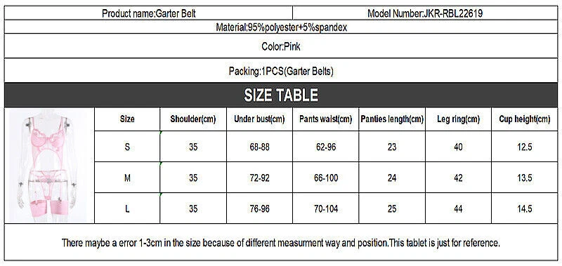 Description: Material: Polyester Size:S-L Package Includes: 1pcs Sexy garter lingerie + G-string NO TE: 1.Due to the different reasons of each person's computer display, the picture may have a little color difference. 2.If you have any questions, please contact us. (1) We will send your items within 5 working days (except weekends and Chinese public holidays) (2) It is recommended that you choose Speedpak shipping. Usually economical international packages take 12-30 days to arrive, but Speedpak shipping can arrive within 7-12 days. Please pay for your items together, we will send your items in one package (we may add free gifts), please do not pay for your items one by one. About us If you are not satisfied with our products or services, please contact me, do not give us negative or natural feedback, we will definitely give you a satisfactory solution. (I believe there will be no problem with communication) Contact us We will reply most emails within 24 hours on working days. If you do not receive a reply from us, please resend your email, because sometimes it may be due to Internet problems that we did not receive your message. If you need to buy in bulk, please contact us by email, wholesale is always welcome Bulk purchases can get more discounts Welcome to buy wholesale at any time. Wholesale please contact us by email View our other projects For more exquisite products, please browse the store selection